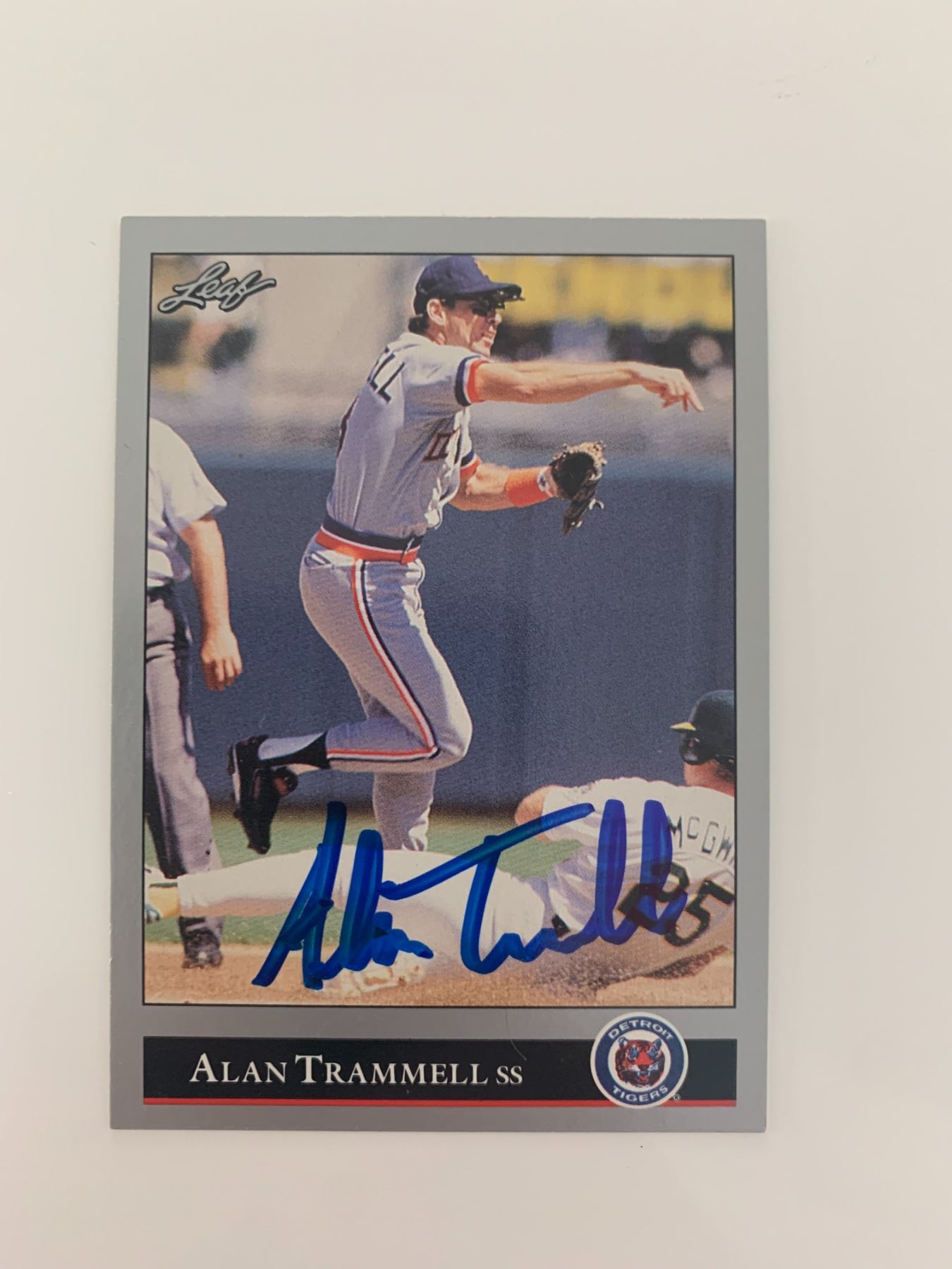 Alan Trammell signed baseball card. Leaf 1992. 2x3 inches