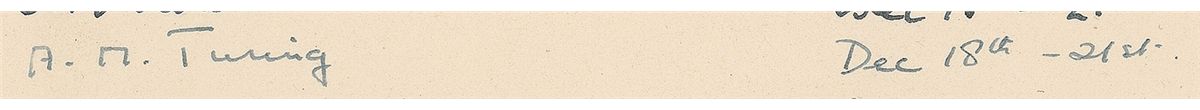 Immensely influential British mathematician, cryptanalyst, and computer scientist (1912–1954) considered the father of theoretical computer science and artificial intelligence. Rare fountain pen signature, “A. M. Turing,” on an off-white 7.25 x 10 sheet removed from a guest register. In fine condition. Turing first made his name as a code-breaker for Great Britain during World War II, where he devised methods for cracking German ciphers, including contributions toward defeating the Enigma machine; Winston Churchill said that Turing made the single biggest contribution to Allied victory in the war against Nazi Germany. In his work on artificial intelligence he developed the ‘Turing test,’ an attempt to define the standard by which a machine could be called ‘intelligent.’ Certainly included in the unofficial top three heroes of the world’s computer community, Turing frequently appears on Times’s list of the greatest names of the 20th century. Due to an early death at 42 and relative obscurity during life, his autograph is virtually unobtainable; only two examples have come to market. An exceedingly rare autograph of immense historical importance to our technology-driven existence—this may be a once-in-a-lifetime offering.