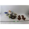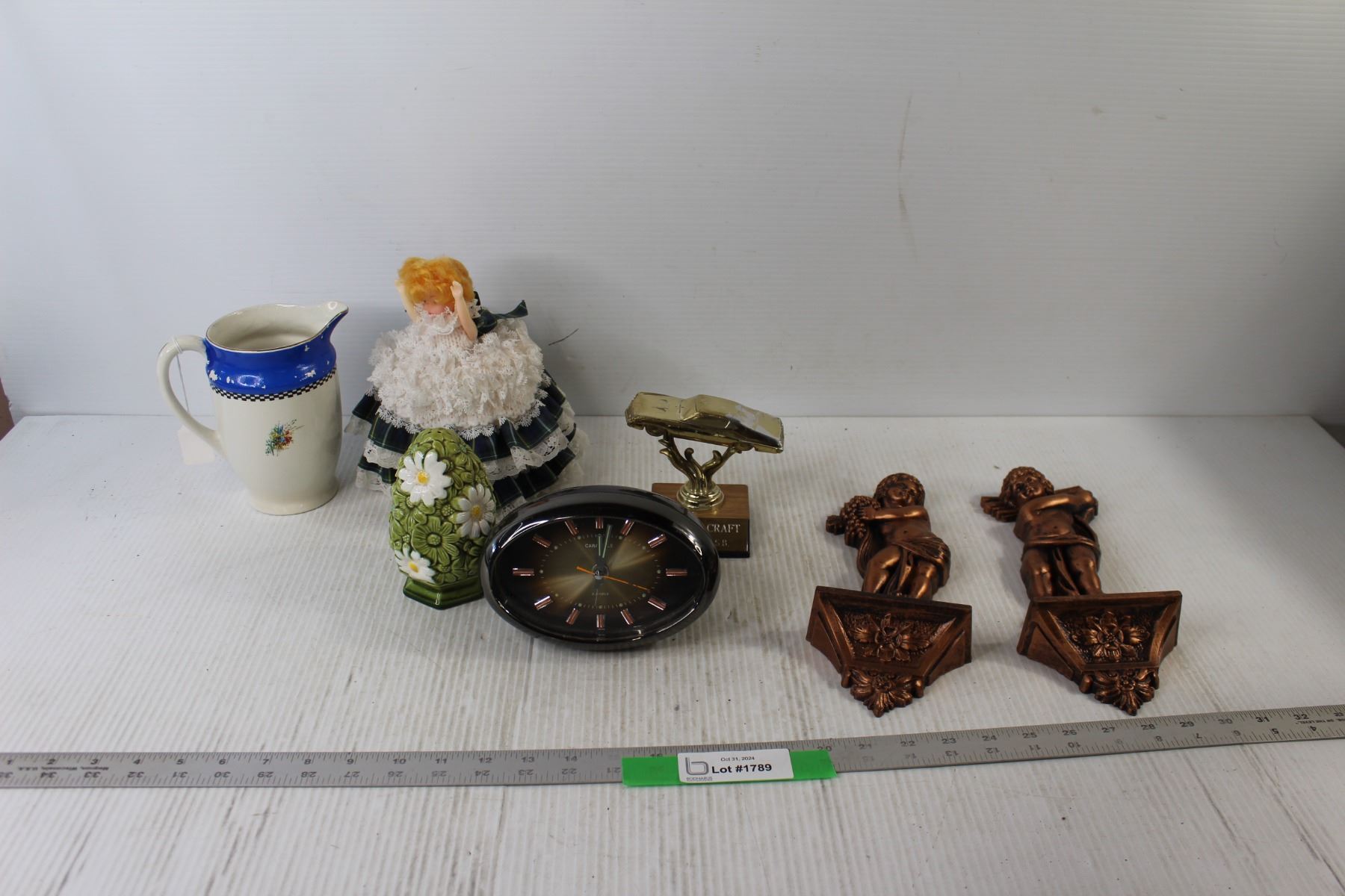 Alarm Clock, Car Craft Trophy, Pitcher, Spice Shaker, Doll, (2) Wall Decorations