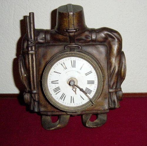 Réveil en métal, cadran émail, motif militaire