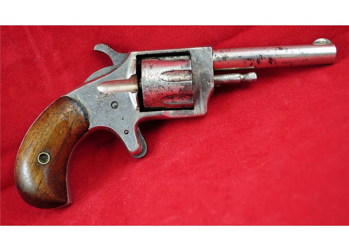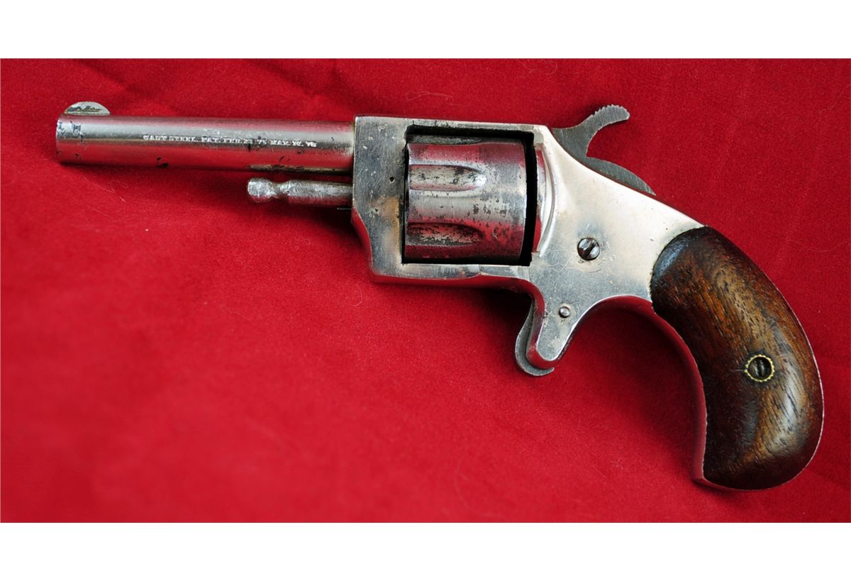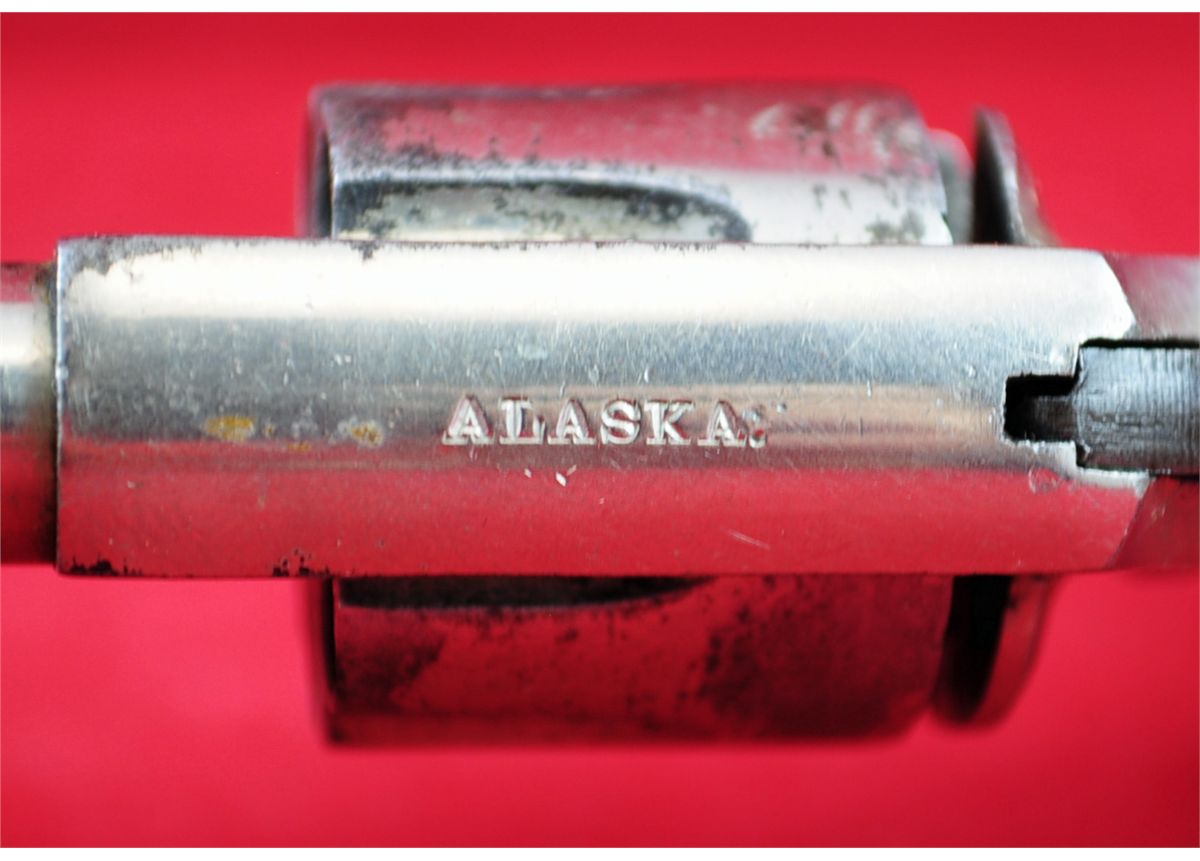 "Alaska" 22 Cal. Nickel Plated Pocket Revolver, Pat 1878, mfg. late 19th century, Ser. # 4233. Pistol is in good condition with normal wear. See photos for more information. Gun is believed to be but not guaranteed to be in shooting order. Kennedys Auction Service has not attempted to test fire any gun in this auction and all guns are sold "IN AS IS CONDITION" and are not guaranteed to be operational.