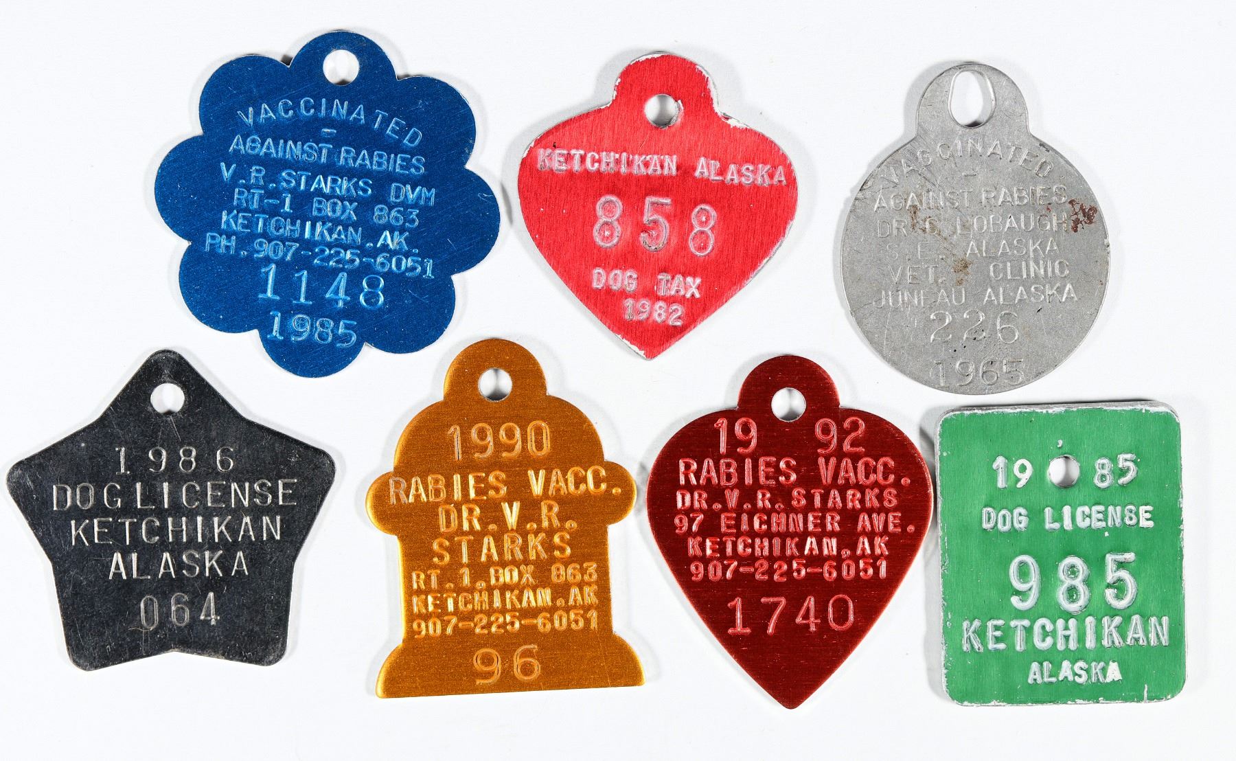 Lot of seven dog tags from Alaska: Juneau and Ketchikan. Ex: Ron Lerch collection.