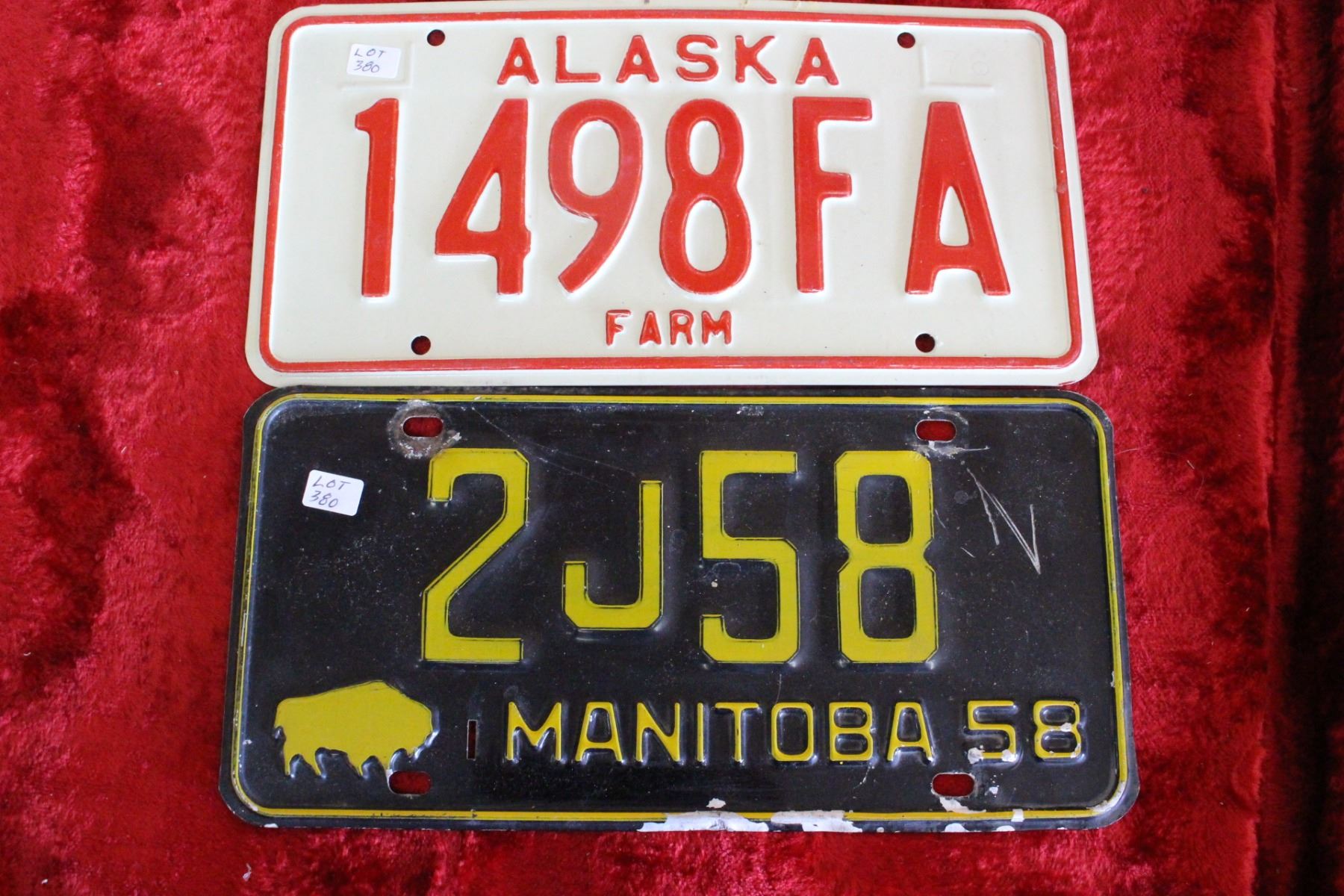 Alaska Farm License Plate & a 1958 Manitoba License Plate