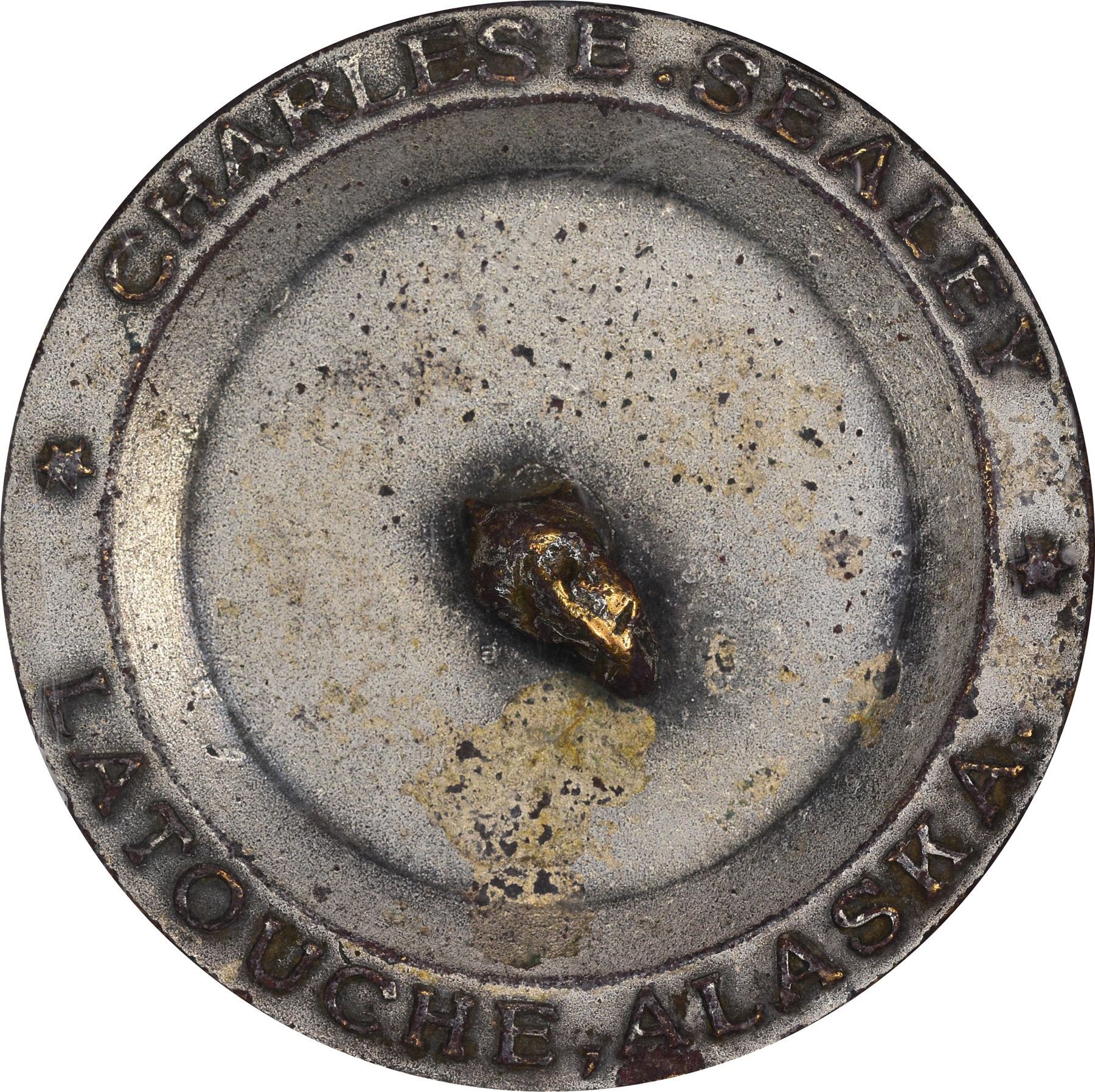 Title: Alaska. Latouche Island. Undated (circa 1905-1910) Charles E. Sealey $1 Good-For Token. Silvered Bronze or Brass, Gold-Plated Nugget. AU-55 NGC.