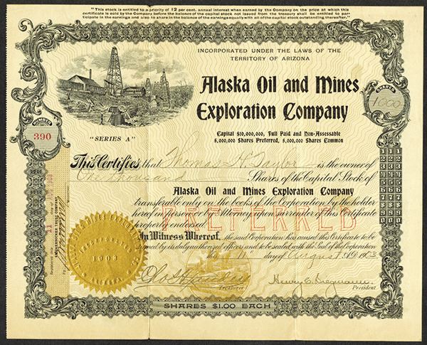 Alaska Oil and Mines Exploration Co. 1903 Issued Stock