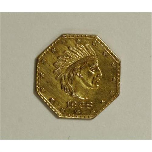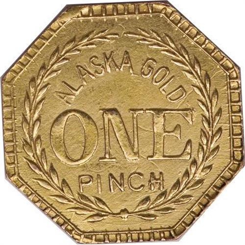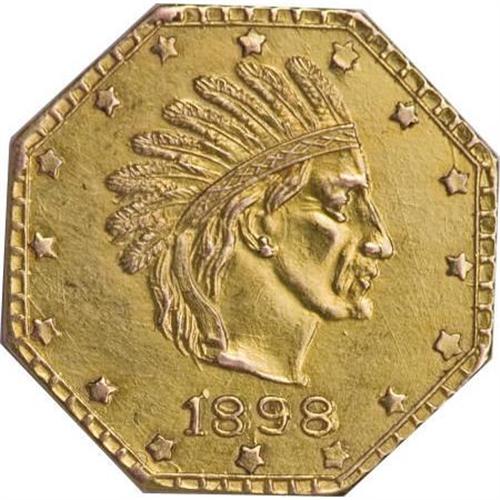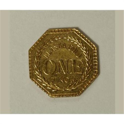 <B>1898 Alaska One Pinch Gold.</B></I> Gold 12-mm octagonal 1898 Alaska one pinch coin, HK-844. The date has been recut on this AU coin. <BR> <BR><BR><b>Shipping:</b> Coins & Currency (<a target="_blank" href="http://www.heritageauctions.com/common/shipping.php">view shipping information</a>)