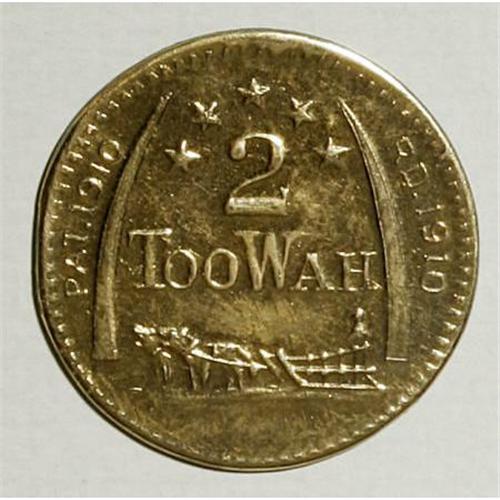 <B>Alaska Toowah Gold-Plated Restrike MS64 NGC.</B></I> Consists of two toowah tokens from Alaska: a <B>gilt restrike ca. 1940s, MS64 NGC;</B></I> and an <B>exact duplicate </B></I>except it's a bit higher grade and uncertified (there is a rim flaw on this piece).<BR><BR><b>Shipping:</b> Coins & Currency (<a target="_blank" href="http://www.heritageauctions.com/common/shipping.php">view shipping information</a>)