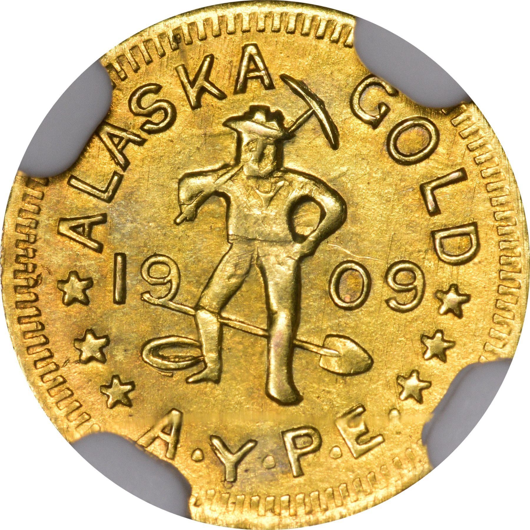Description: Alaska-Yukon-Pacific Exposition 1/2 DWT, 1909. GB 161. Choice, Brilliant Uncirculated, lightly toned. NGC MS 63.
