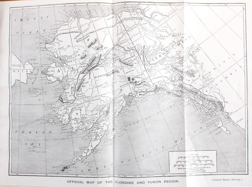 This is a rare salesman sample of "The Klondike Gold Fields" written by A.C. Harris and published in 1897. The book is an abbreviated version of the full book that has been offered in the previous lot in this auction. The salesman sample was used to solicit orders for the book. It features a wonderfully illustrated cover as well as a sample of the leather spine inside the back cover. There are numerous blank order pages as well. The salesman sample is in good condition. It measures 6.25" x 8.25".
