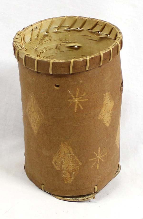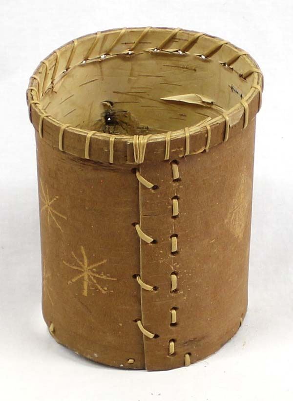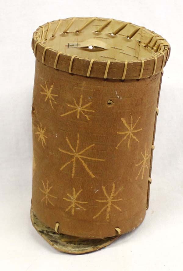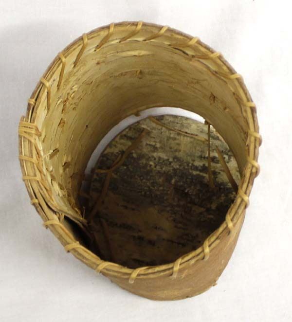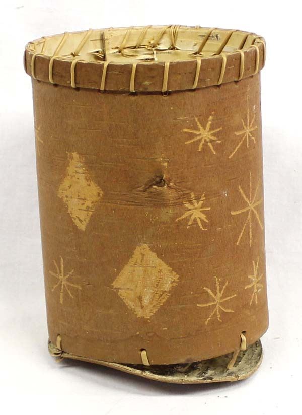 Vintage Alaskan Birch Bark Basket, measures 5'' x 7'', negative star and diamond motif, the base is loose