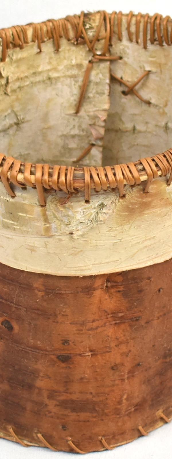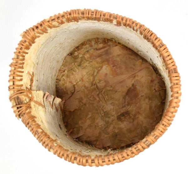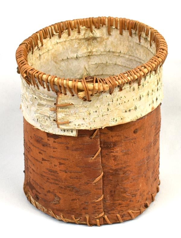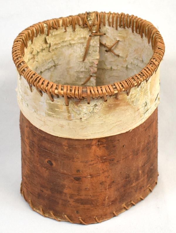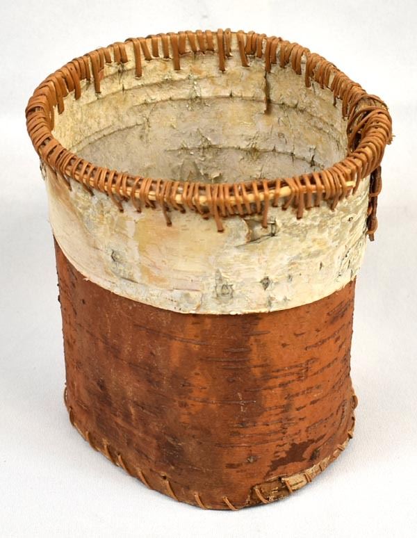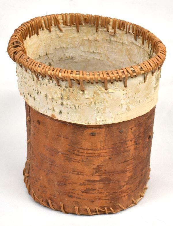 Vintage Native American Alaskan Birch Bark Cylindrical Basket, measures 7'' x 6''