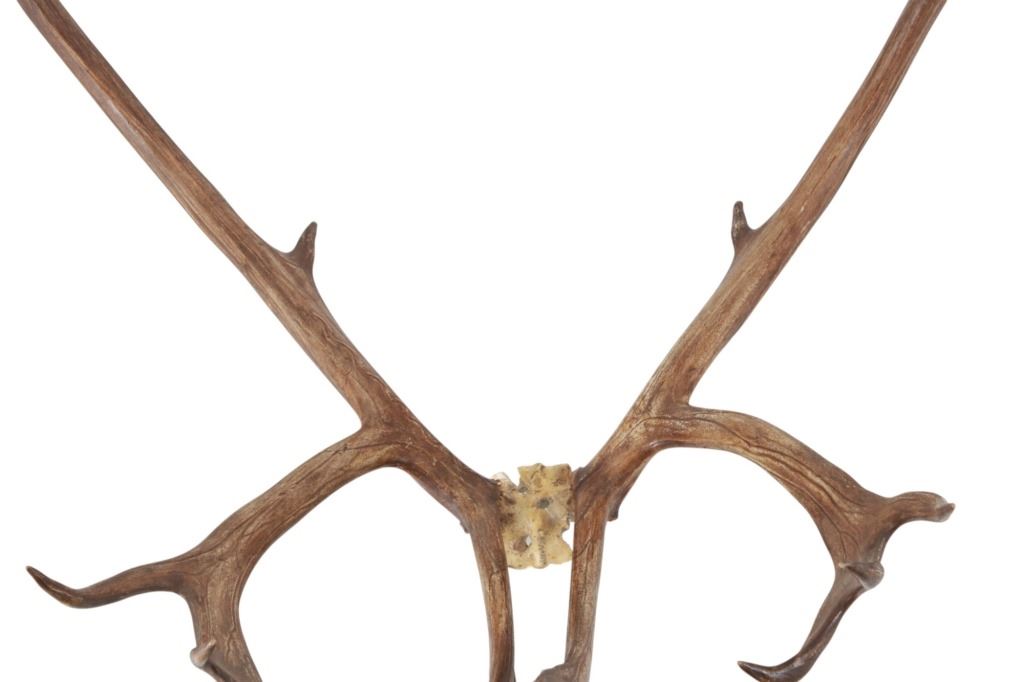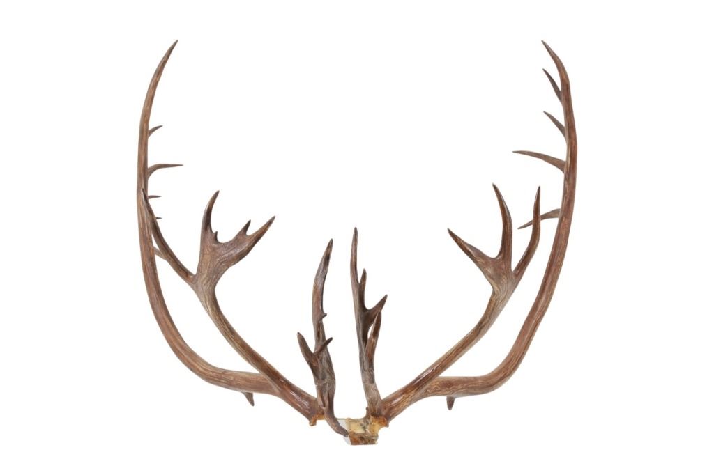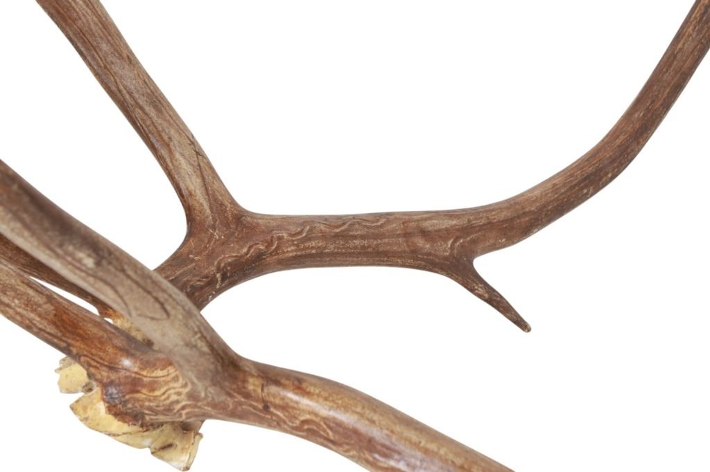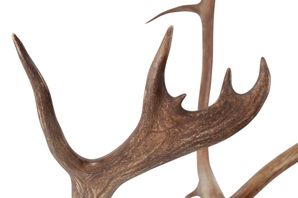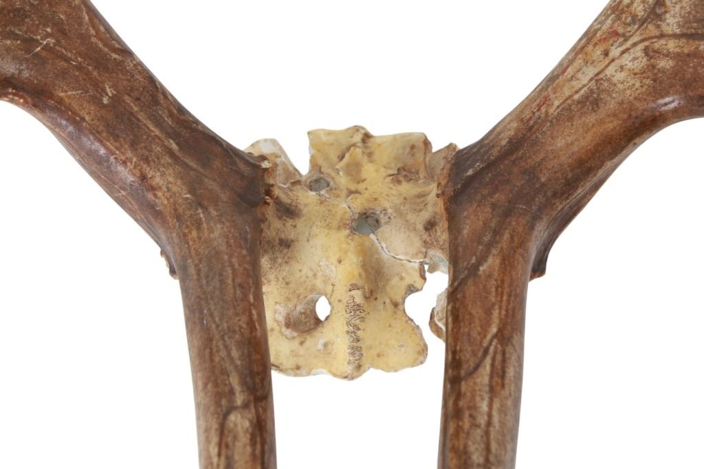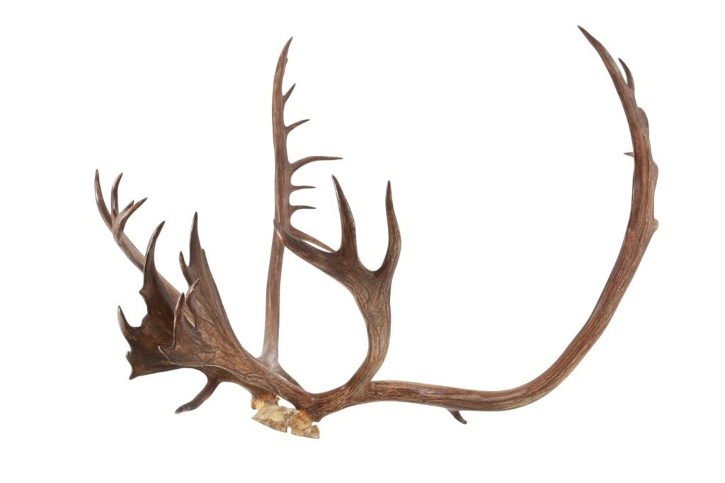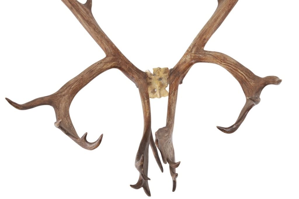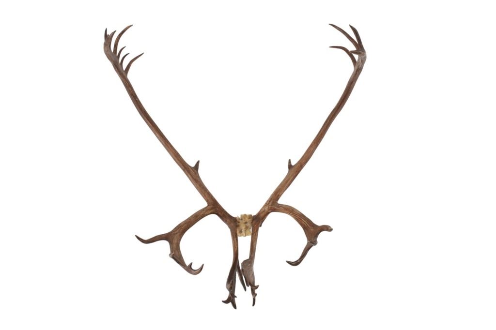 Featured in this lot is this Alaskan caribou antler rack skull cap taxidermy. The taxidermy features a wonderfully and professionally treated and constructed with the natural skull cap originally used as the mounting modem for this magnificent rack of caribou antlers. The condition of this Alaskan caribou skull cap shows the cap broken in half so that each of the antlers are free and not put together, otherwise the antlers show some professional taxidermy treatment and retains its original elegance. The measurements of each of the antler halves measure 45 1/2" x 22" x 13" and the other side measures 43" x 26 1/2" x 10". The collective weight of each of the sides of the rack weigh 14lb 14oz.