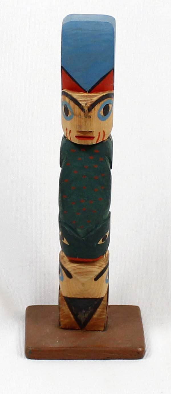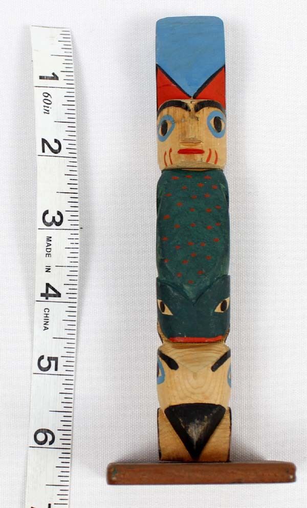 Alaskan Carved Wooden Totem Pole, measures 2” x 6''