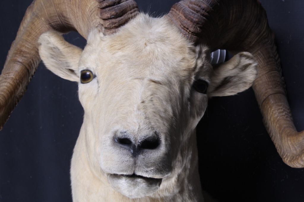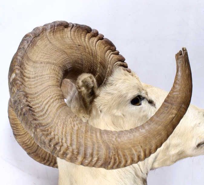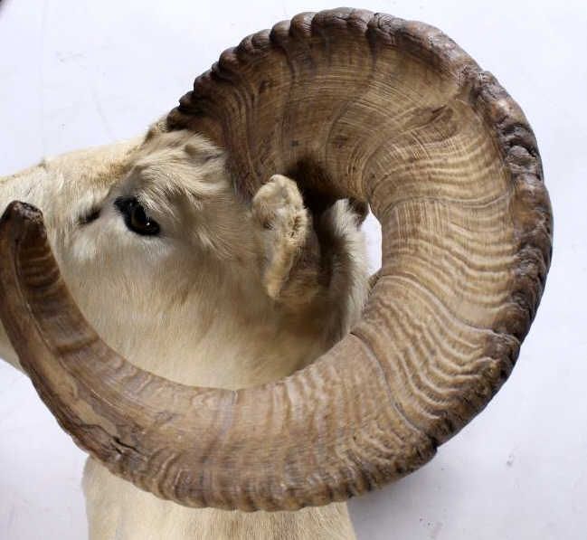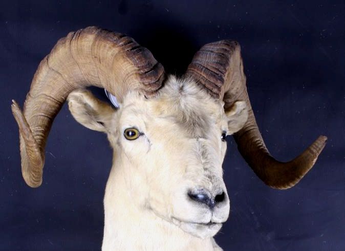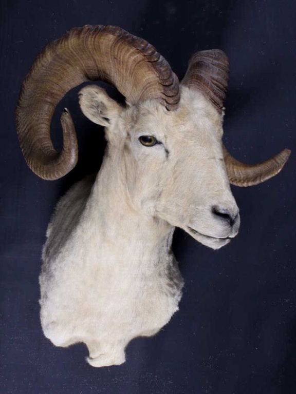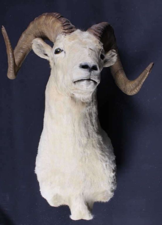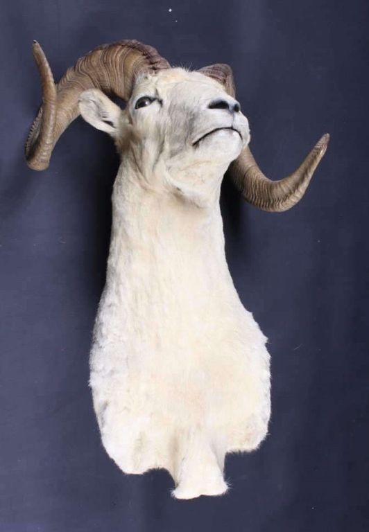 This is a trophy shoulder mount Dall Sheep taken at Brooks Range in northern Alaska. The ram shows a full curl set of large horns and a great condition mount. Shipping Crate will be 23"x24"x33" total shipping weight 88lbs Packaging $78. (25)