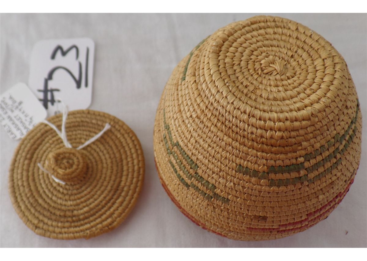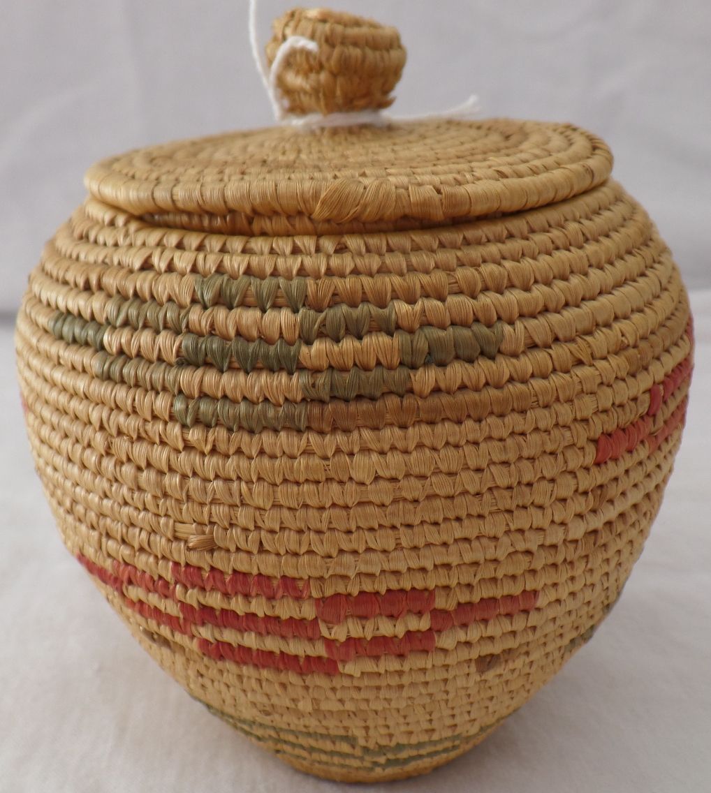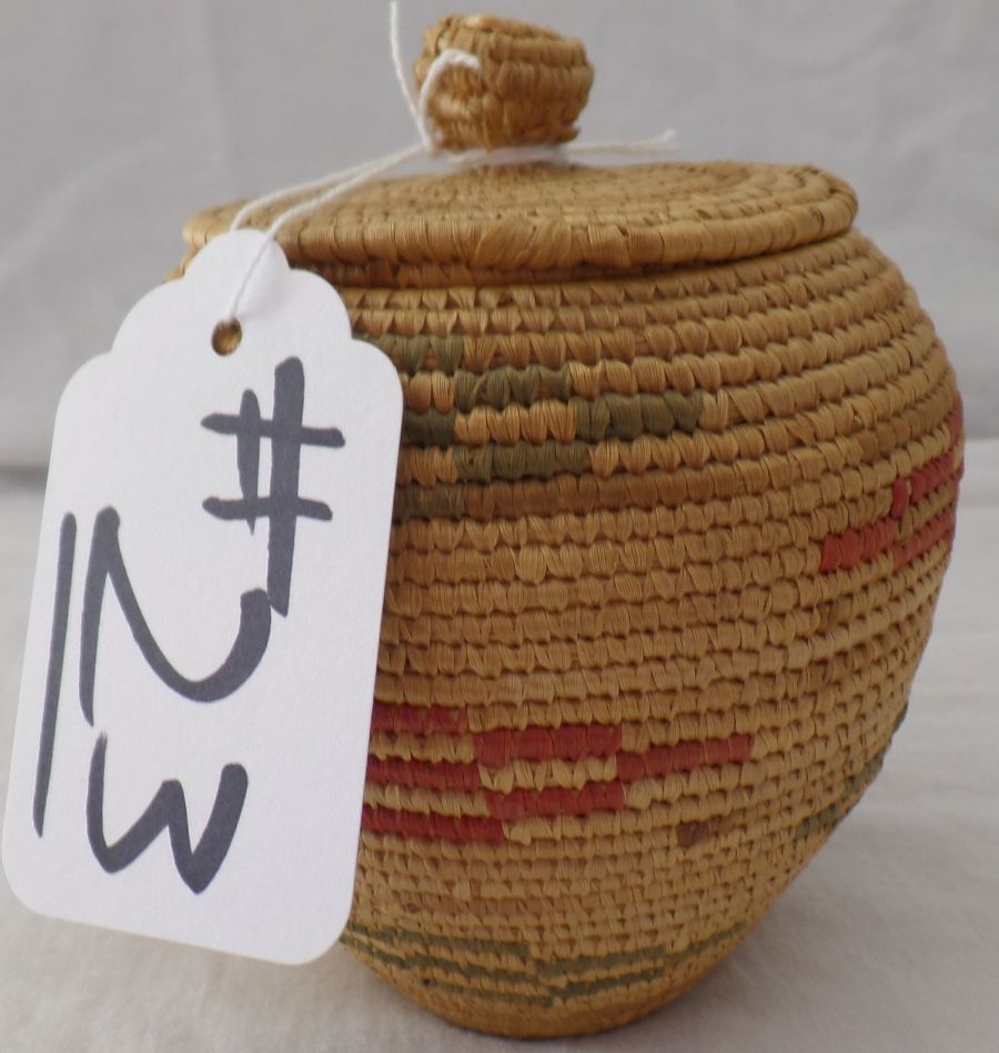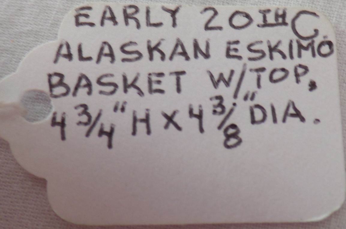 Alaskan Eskimo Basket from the early 20th century. Basket has a 3" opening, 2" base and sits 4.75" tall. Condition: Very Good. Shipping: $12.