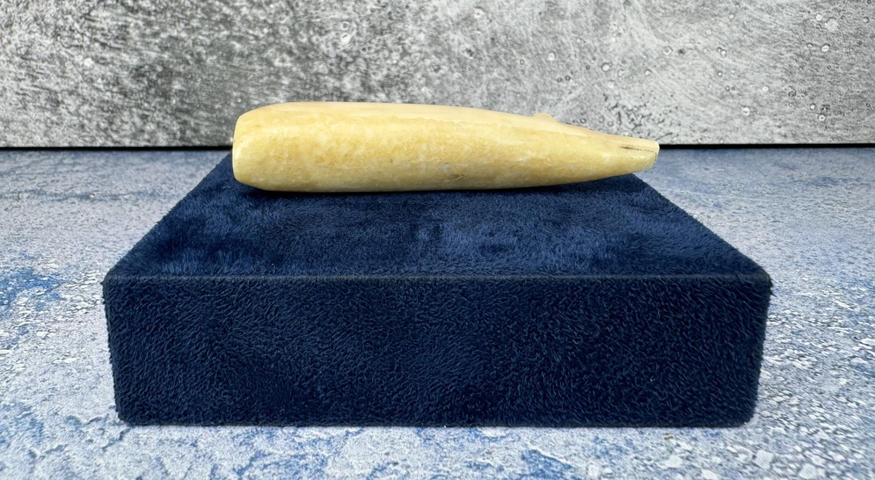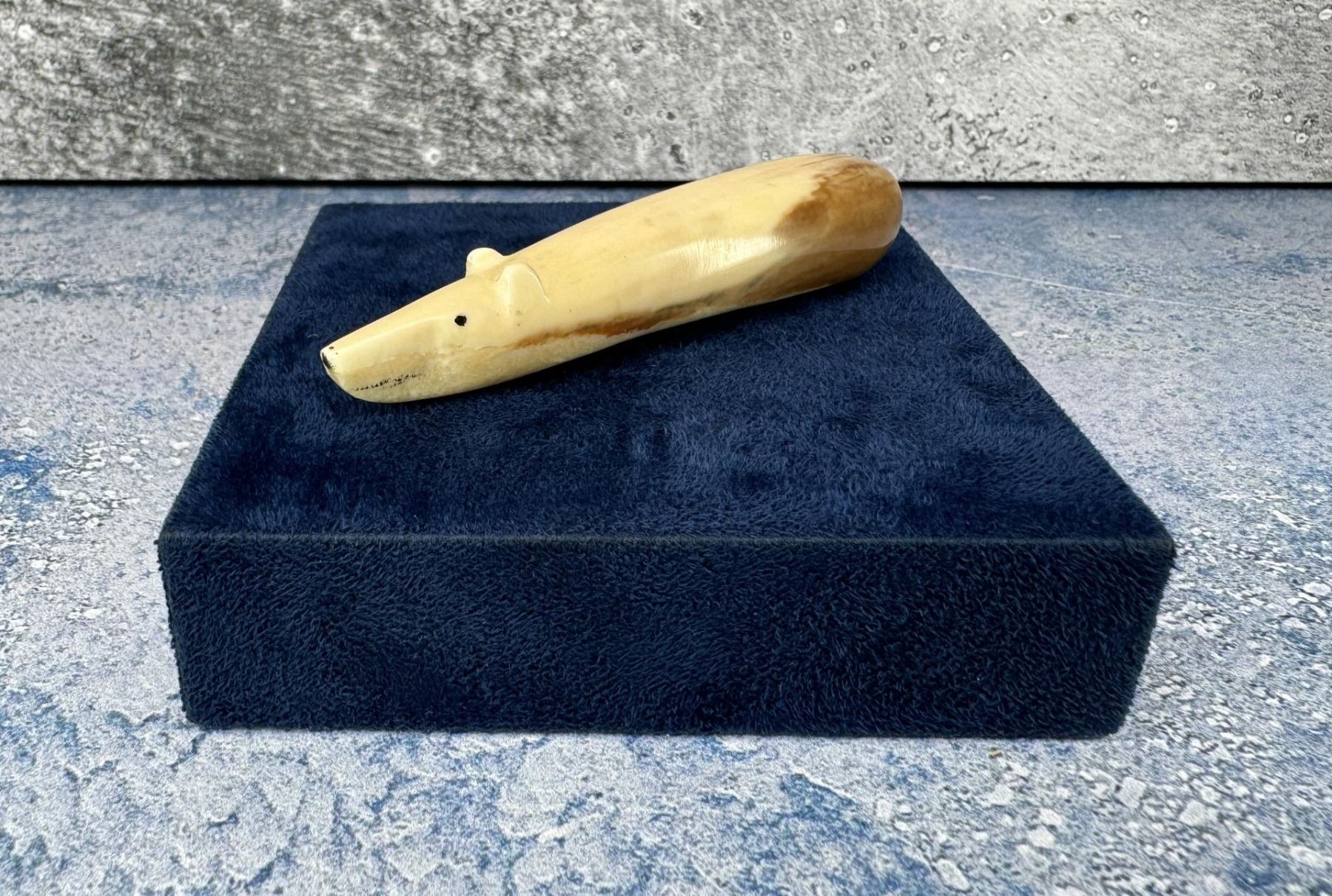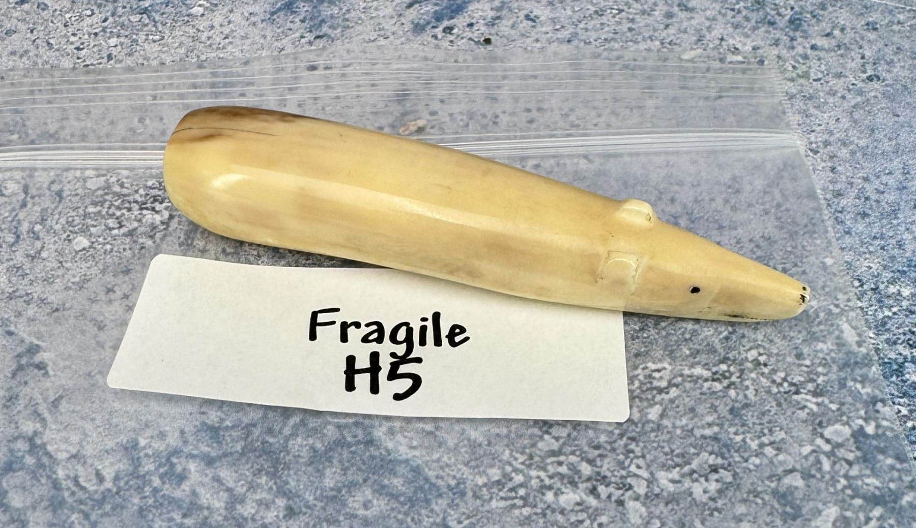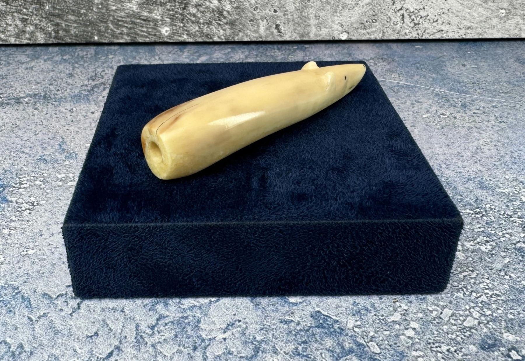 Carved walrus material. 3 1/2" long by 3/4" in diameter.