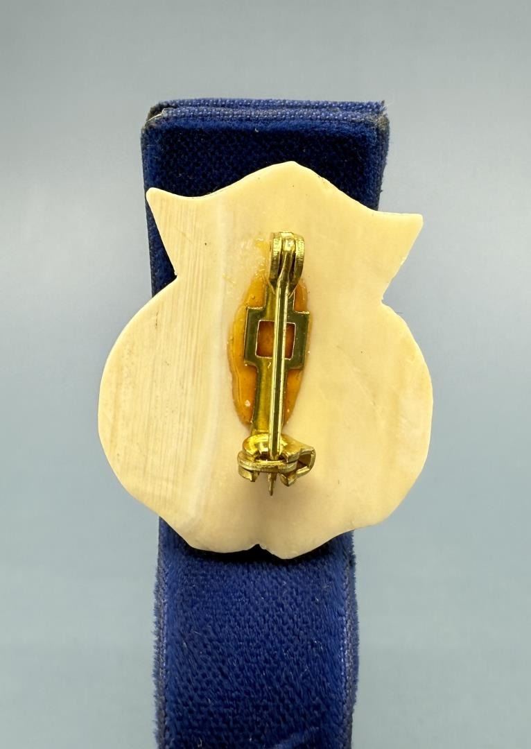 Carved walrus material. 1 1/8" long, 7/8" wide