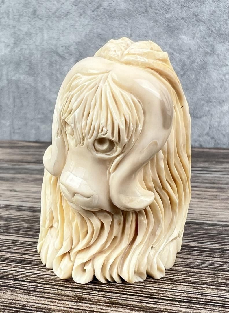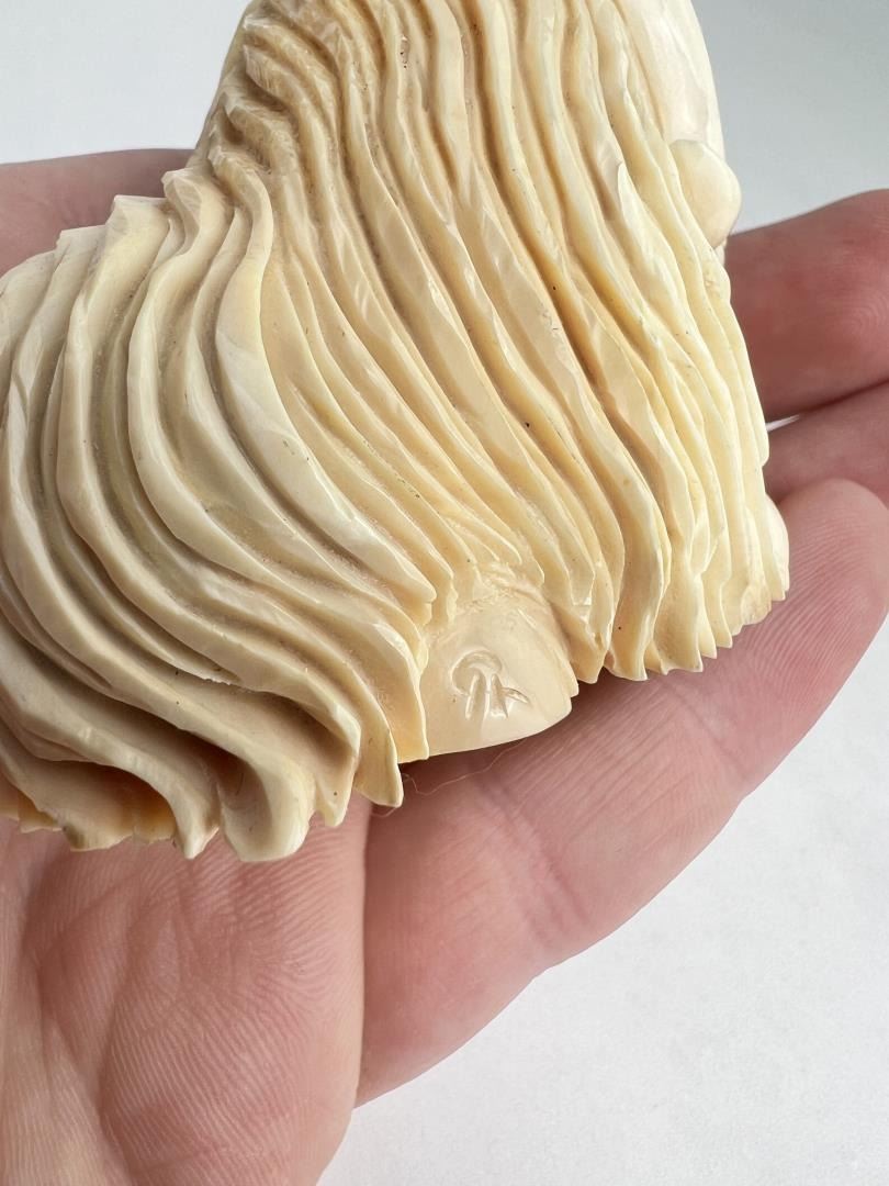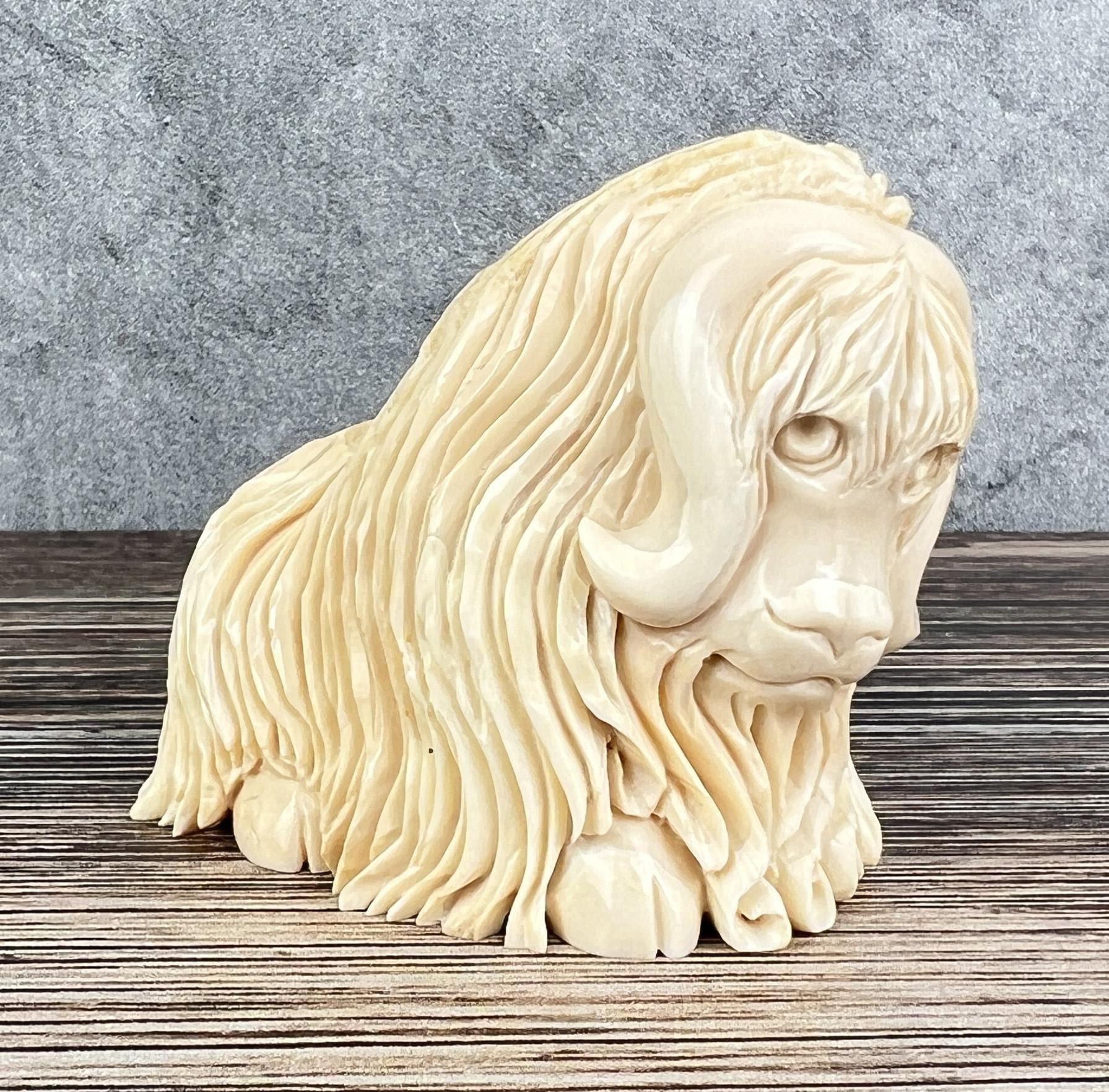 2 3/4" tall, 2 1/4" long, 1 5/8" wide. Carved Walrus Material.