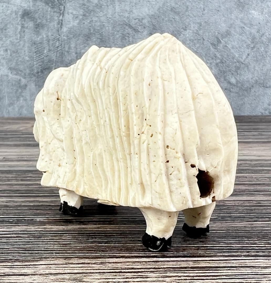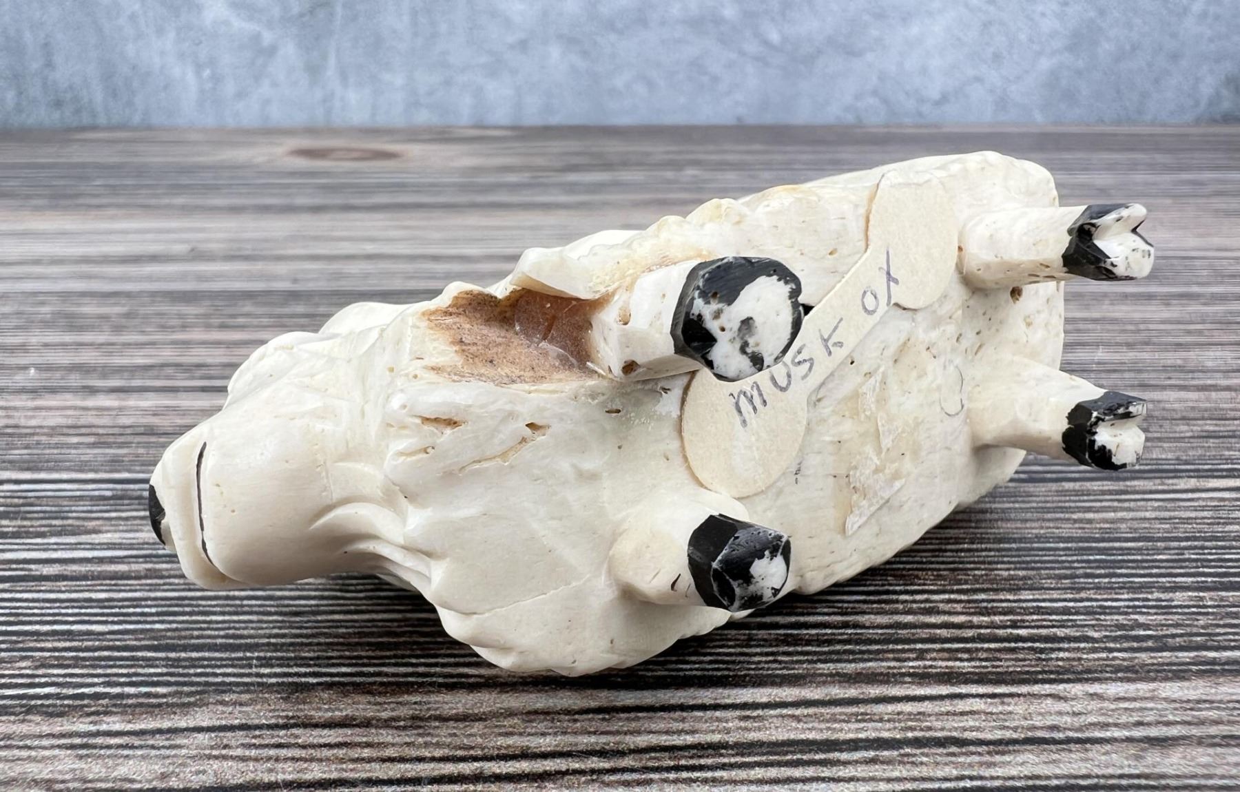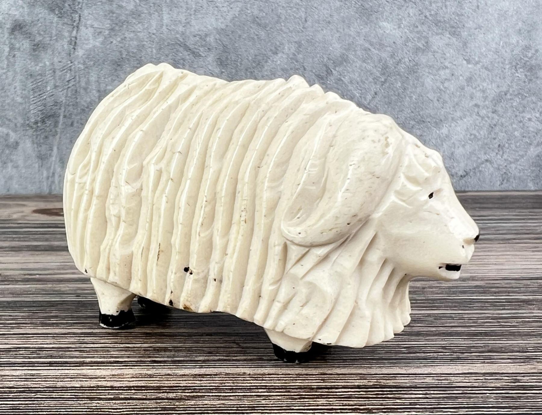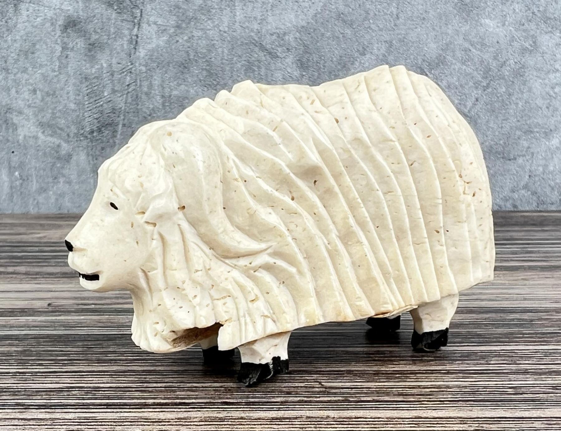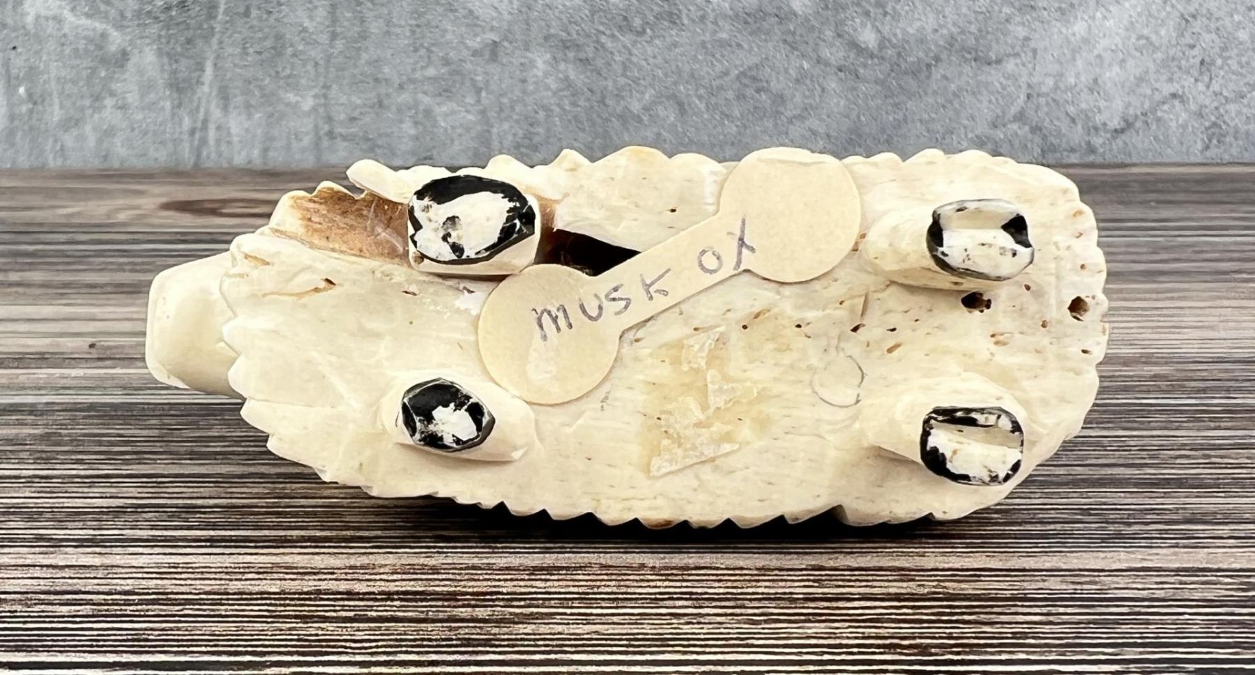 2 1/8" tall, 3 1/4" long, 1 1/8" wide. Carved Walrus Material.
