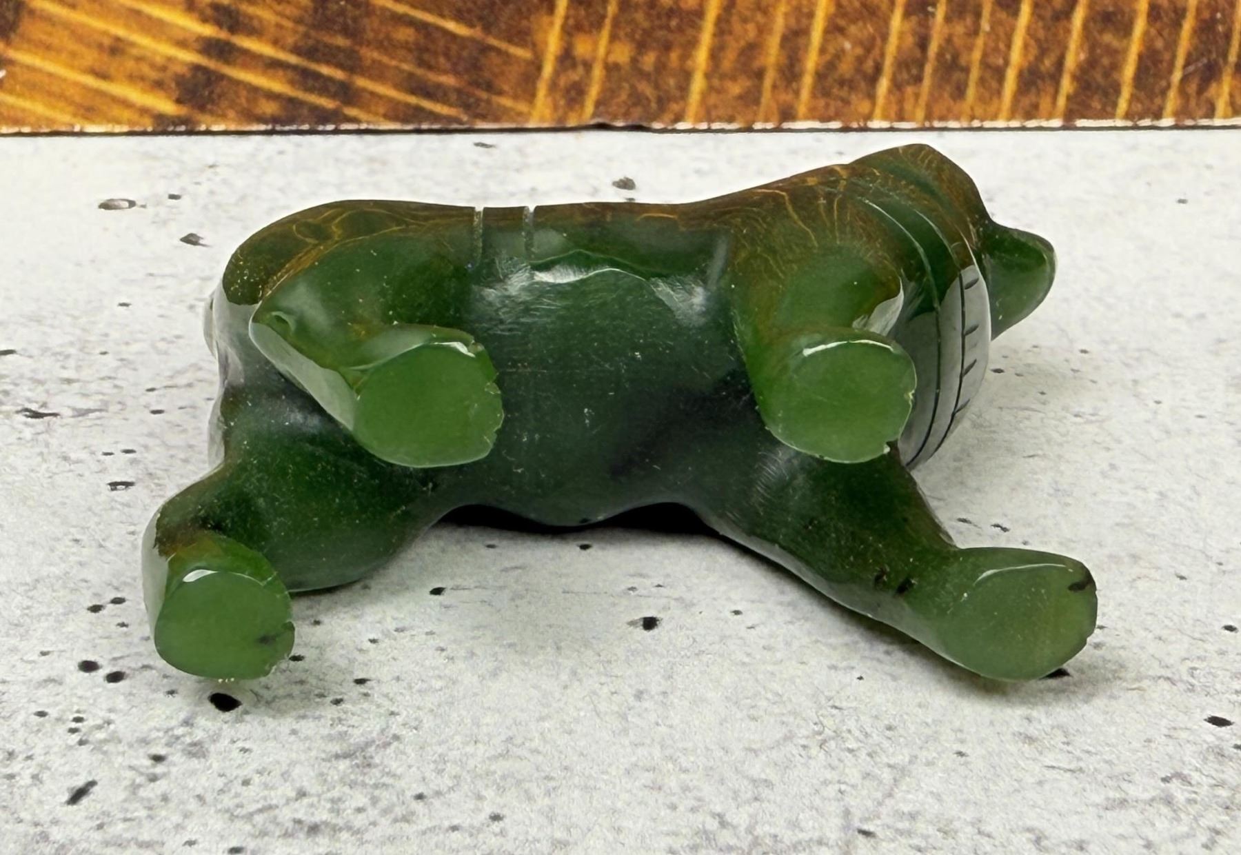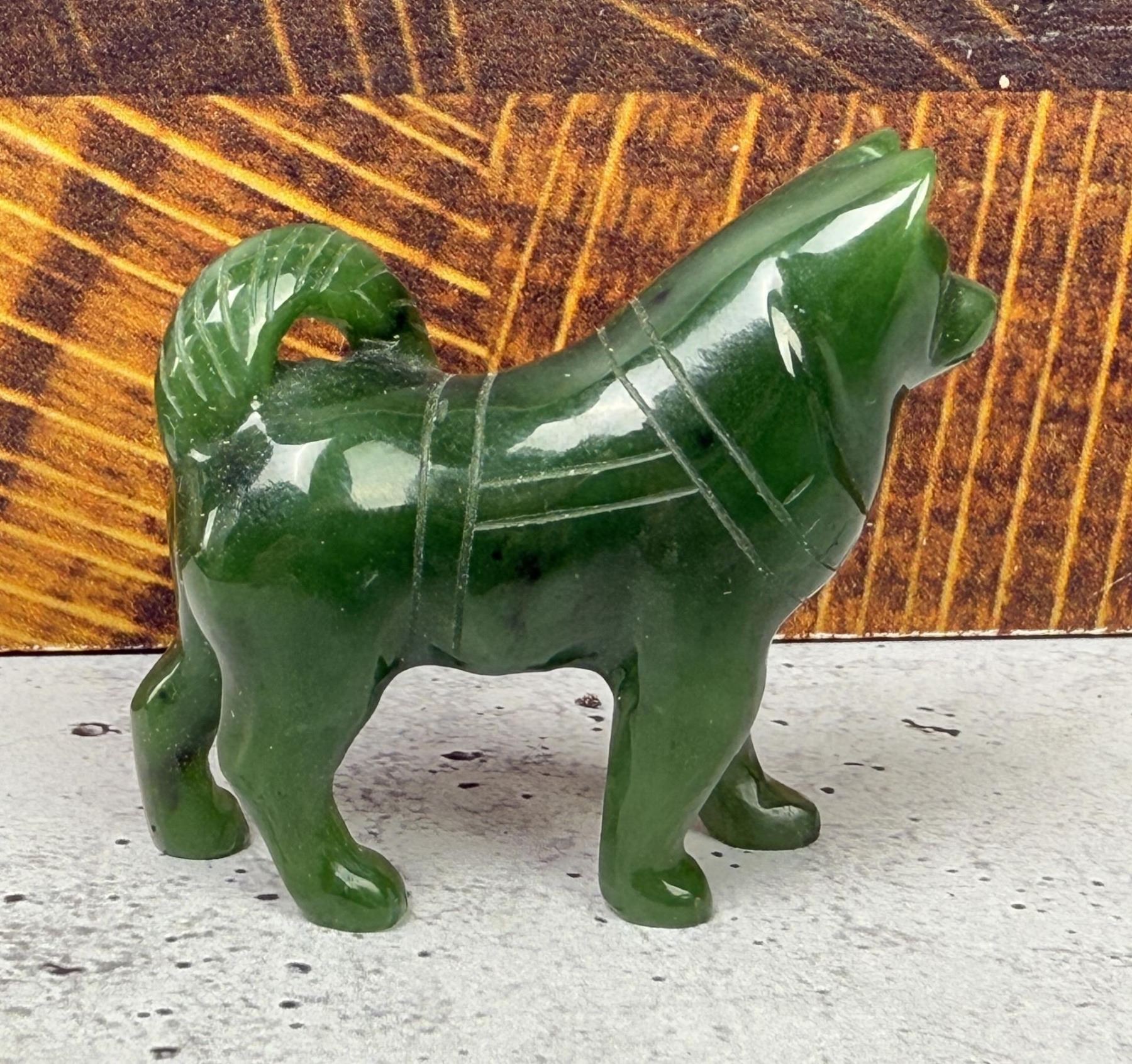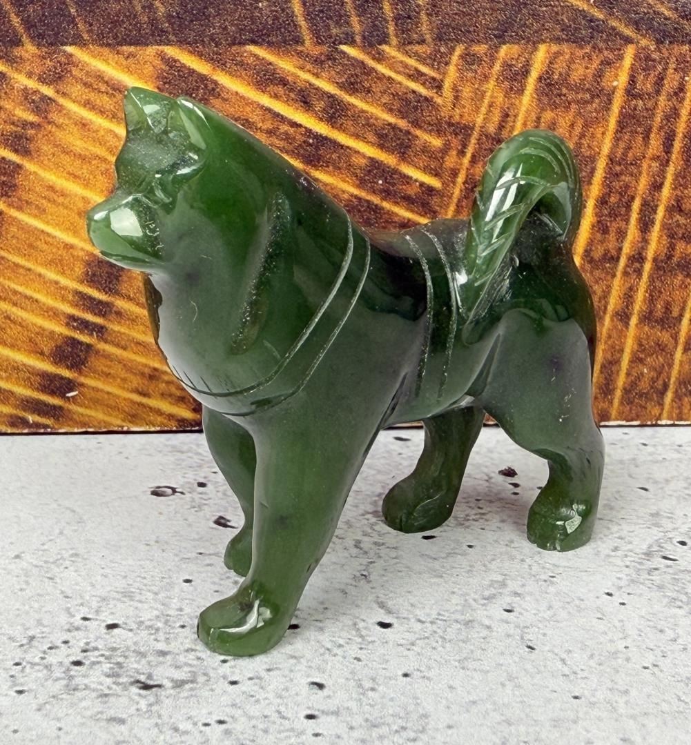 Sled dog in beautiful jade. 1 3/4" tall, 1 3/4" long, 3/4" wide.