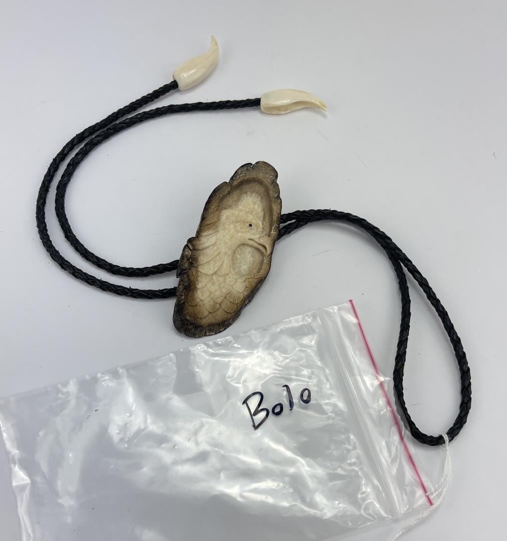 Nice old bolo tie. Fossil walrus tusk. Allard Auction Collection Inv: NLS 45322