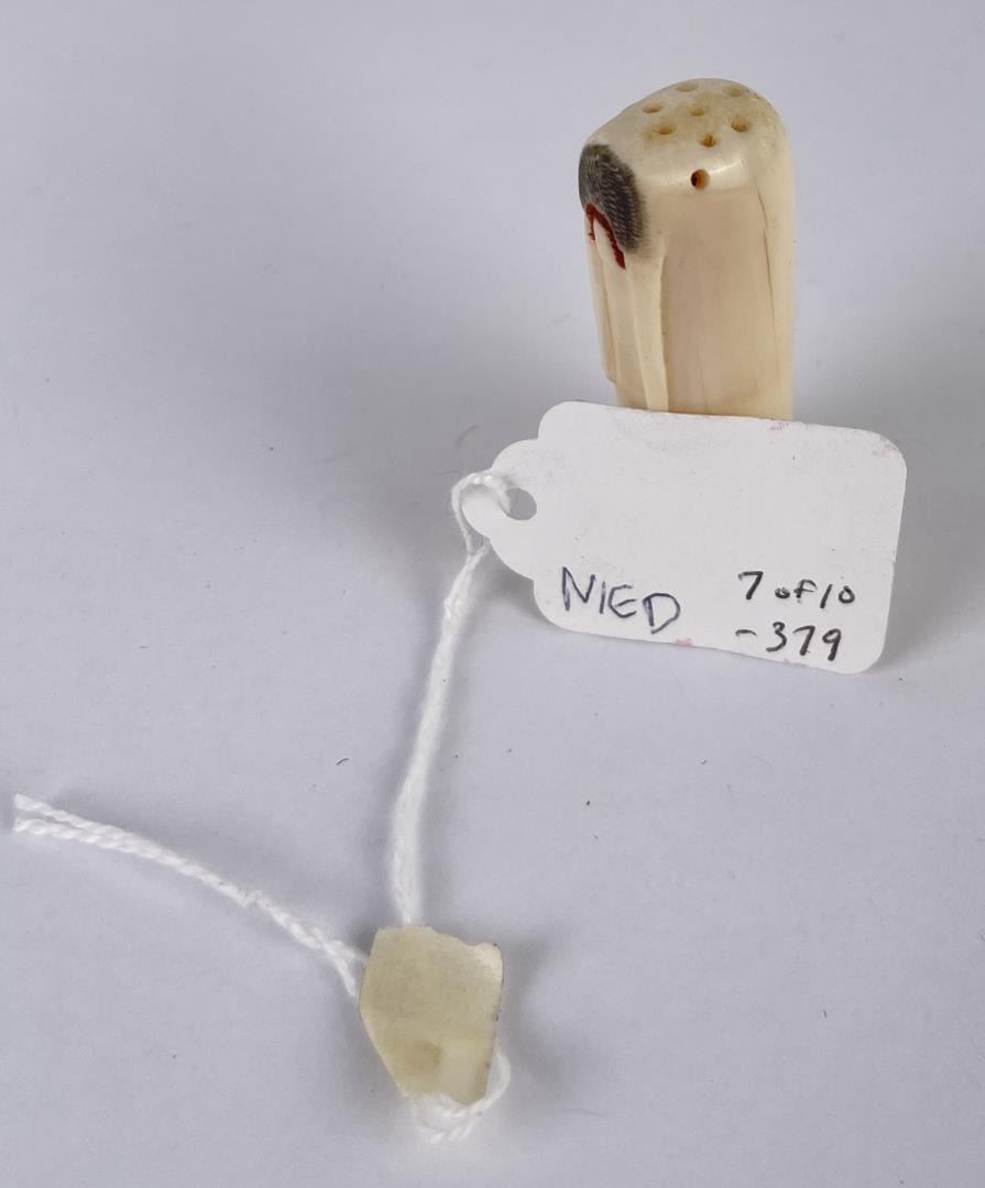 Single shaker. Made from Walrus Tusk. 2 1/4" tall. Allard Auction Collection Inv: NIED
