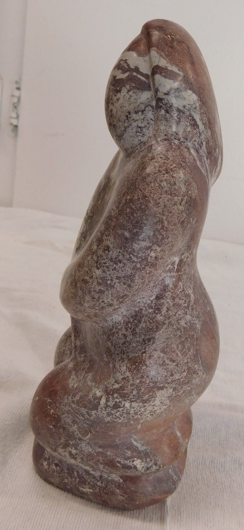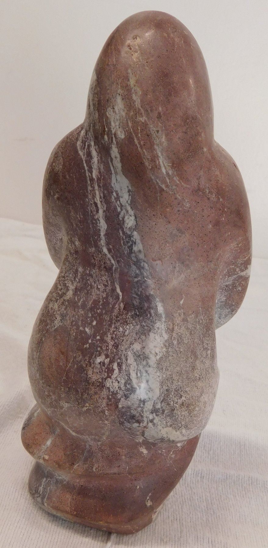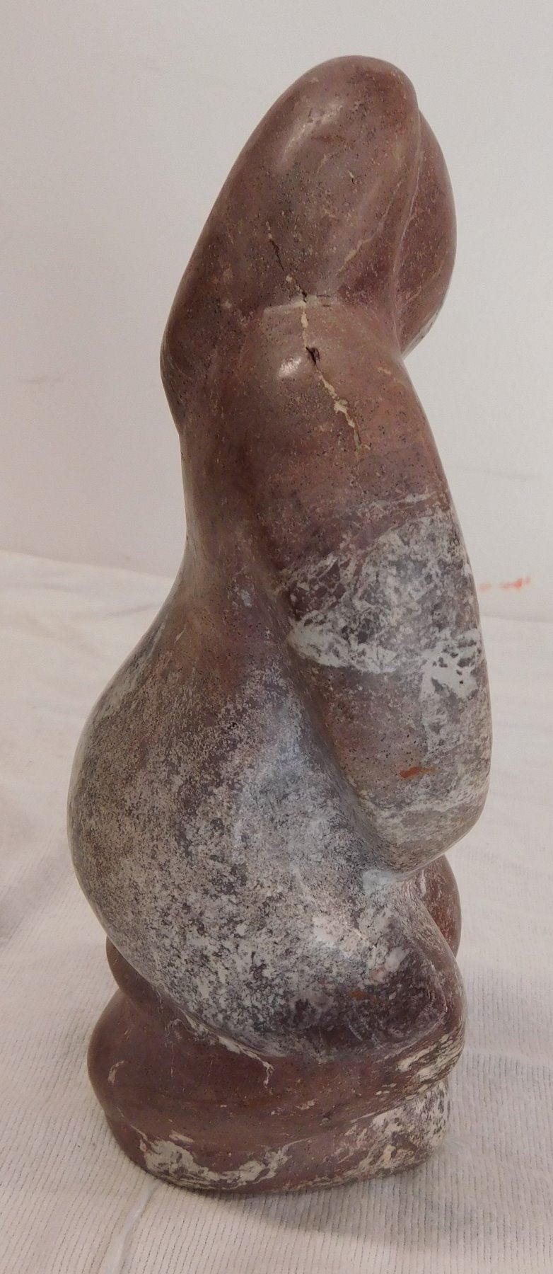 Alaskan Female Figure, circa 1980s. Made of soapstone, the item measures 3.5" x 3" x 8". Alaska. Polish all over except for small portion on chest. Condition: Good, see images. Shipping: $18.50 w/insurance and signature.