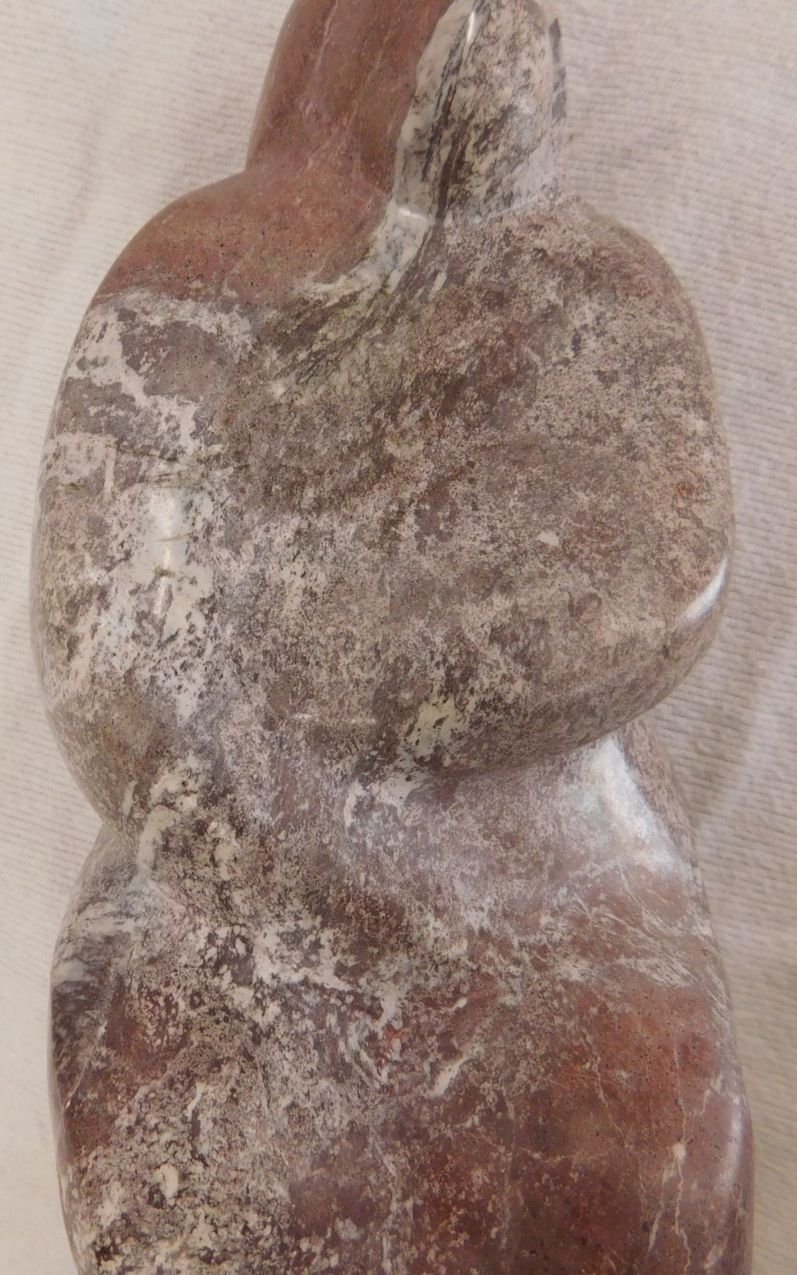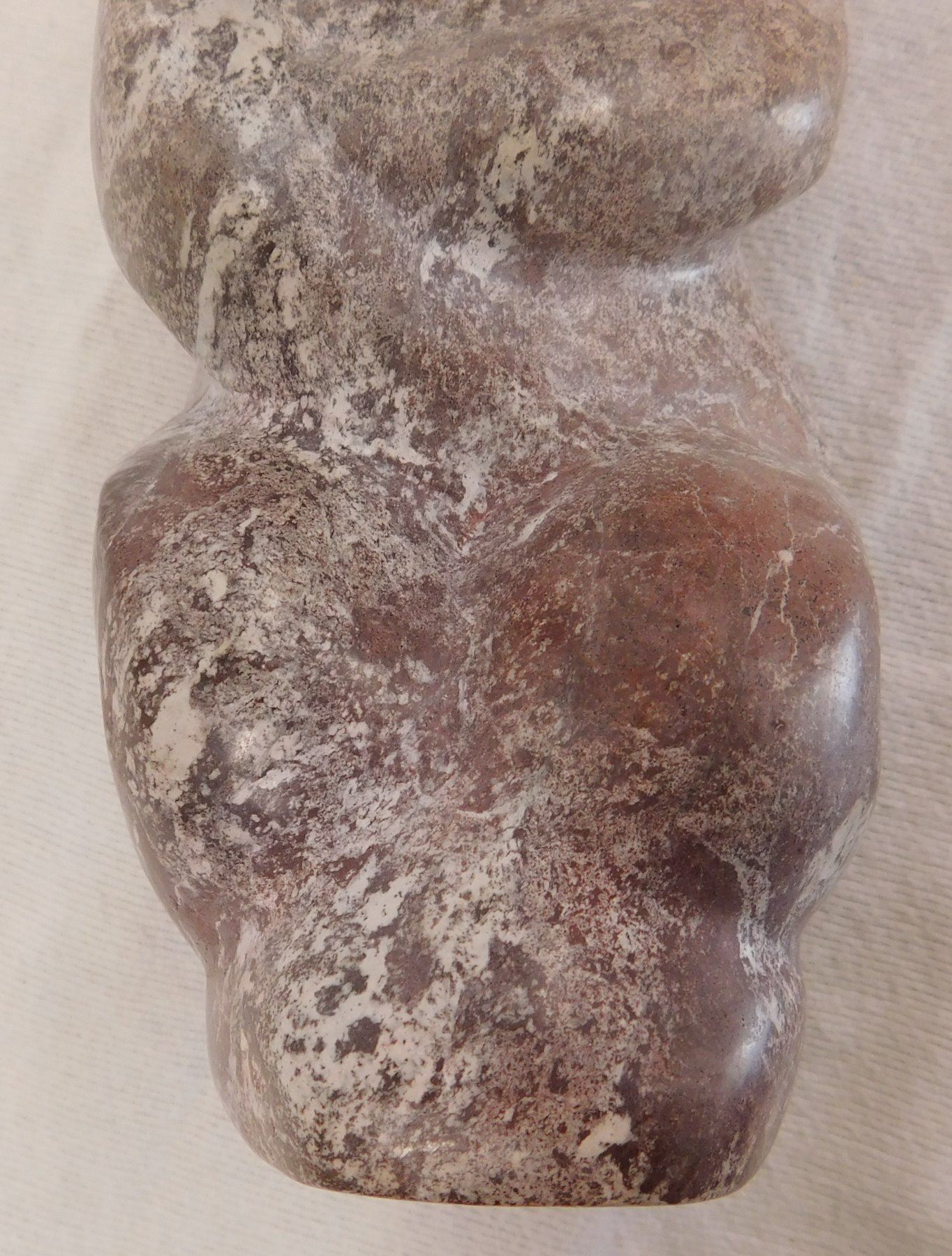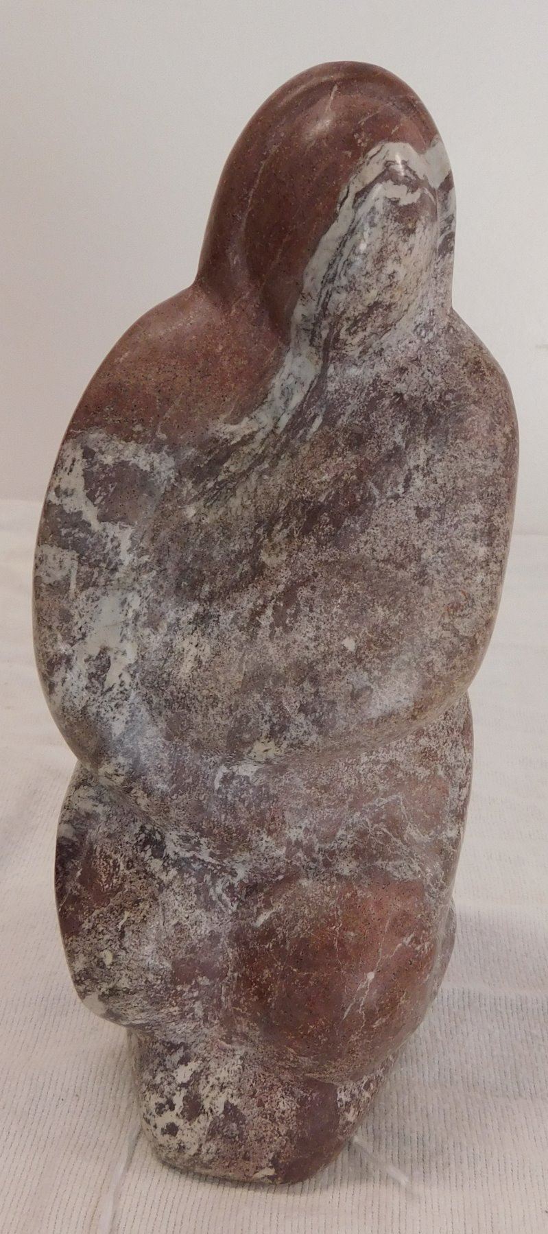 Alaskan Female Figure, circa 1980s. Made of soapstone, the item measures 3.5" x 3" x 8". Alaska. Polish all over except for small portion on chest. Condition: Good, see images. Shipping: $18.50 w/insurance and signature.