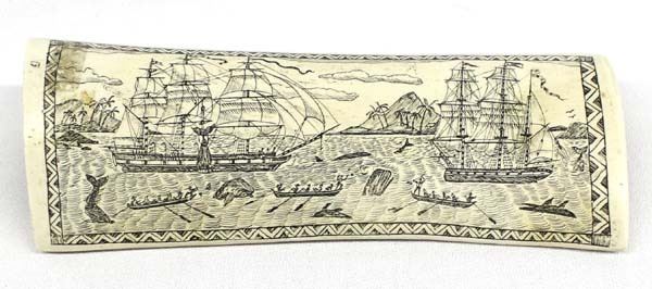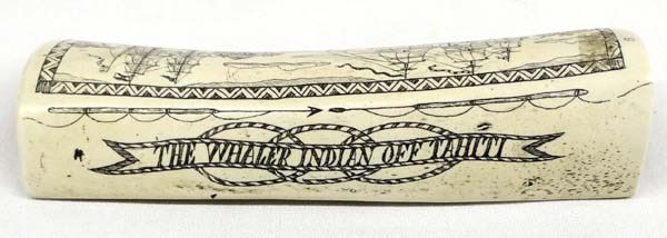 Alaskan Fossilized Ivory Scrimshaw Art, measures 7.5'' x 2.5'' x 2'', comes with card from Alaskan Ivory Outlet in Anchorage, AK