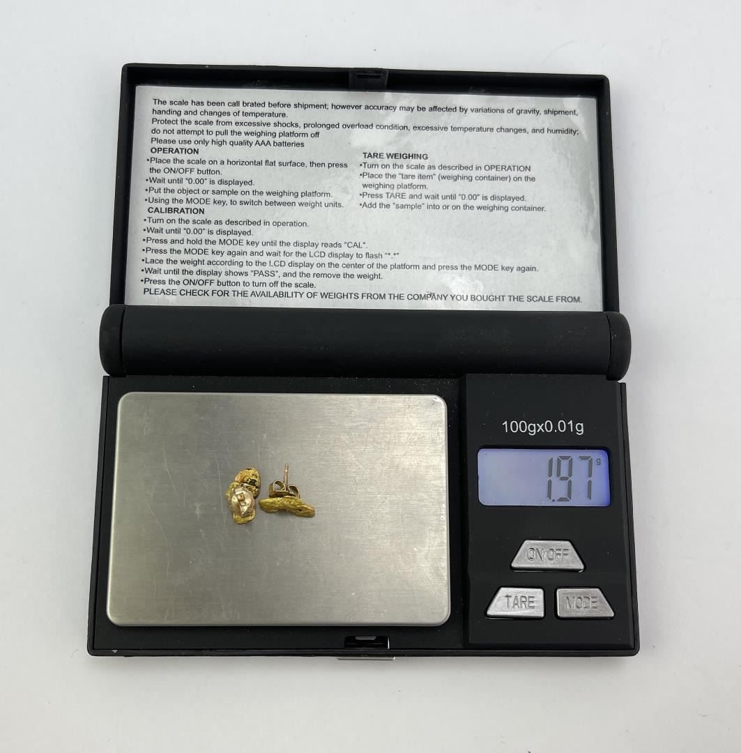 Very nice set of nuggets, post earrings. Alaskan Gold. Total of 1.97 grams.