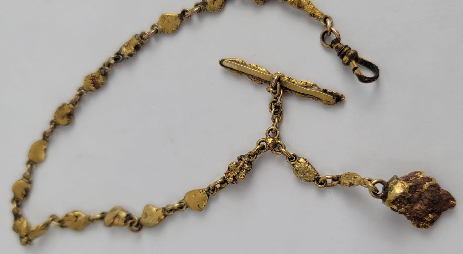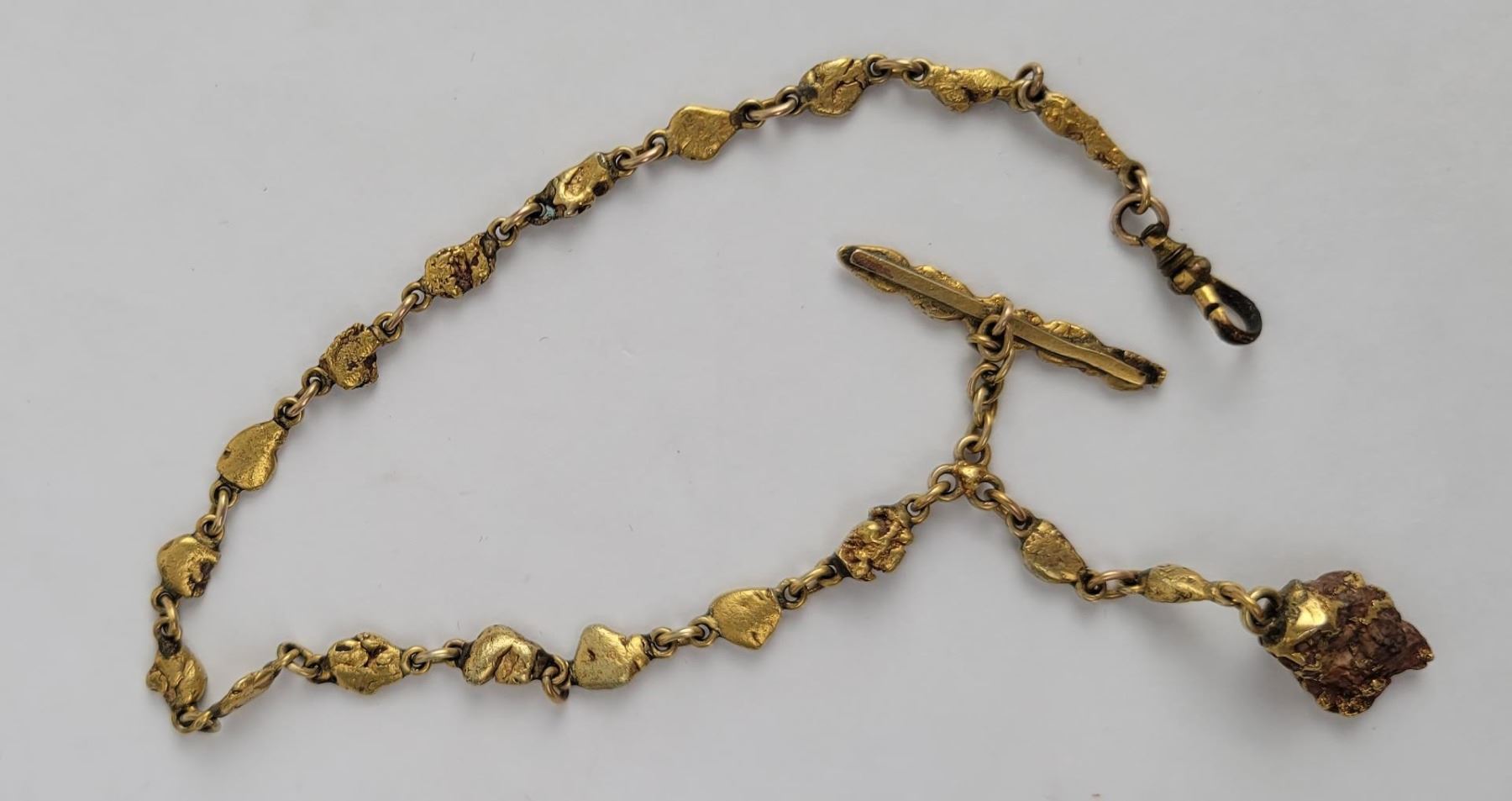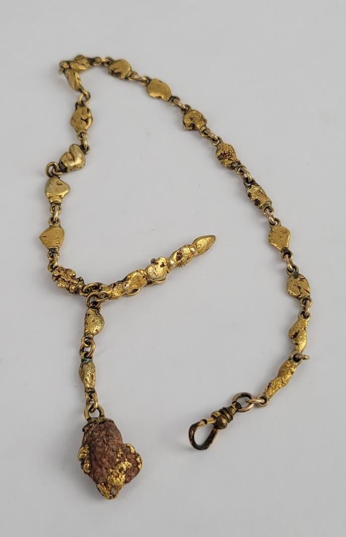 Wonderful old pocket watch chain. Comprised of Alaskan Gold Nuggets. Very flashy. Total weight is 27.57 grams.