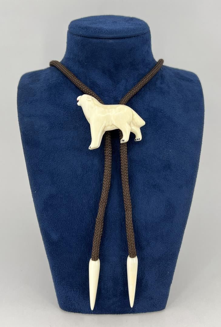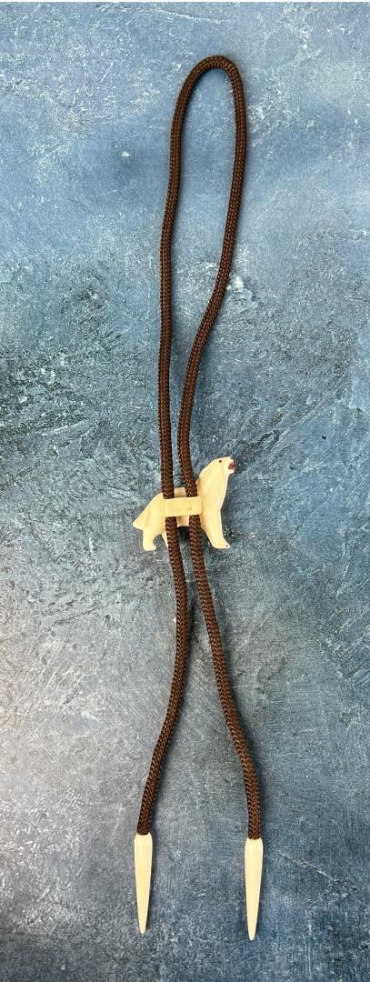 Carved walrus material. 16 1/4" long. Slider is 1 3/4" wide. Norman Sandfield Collection Inv: B1436