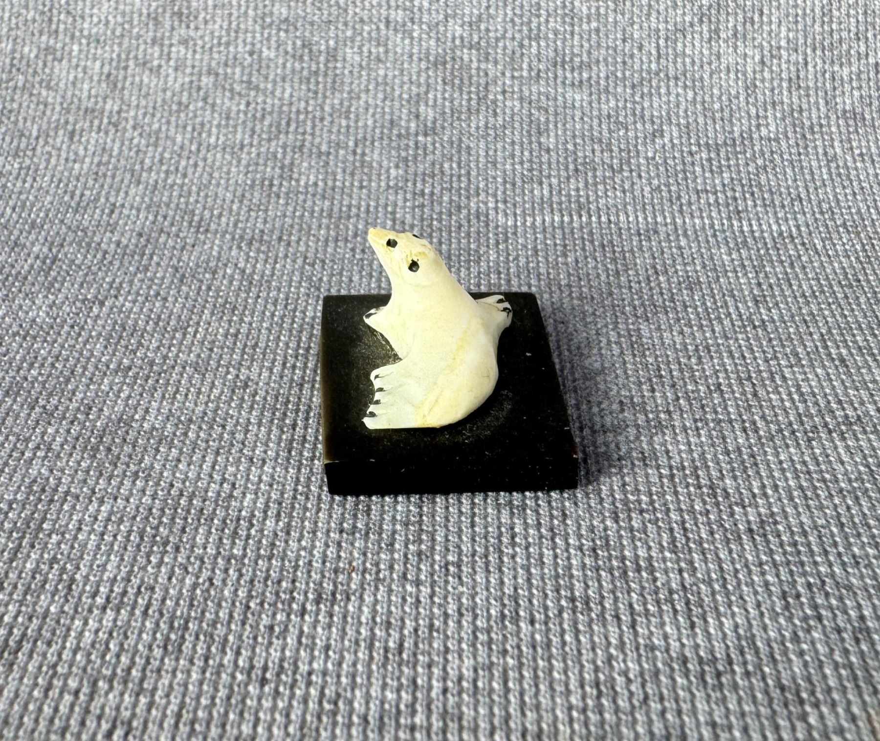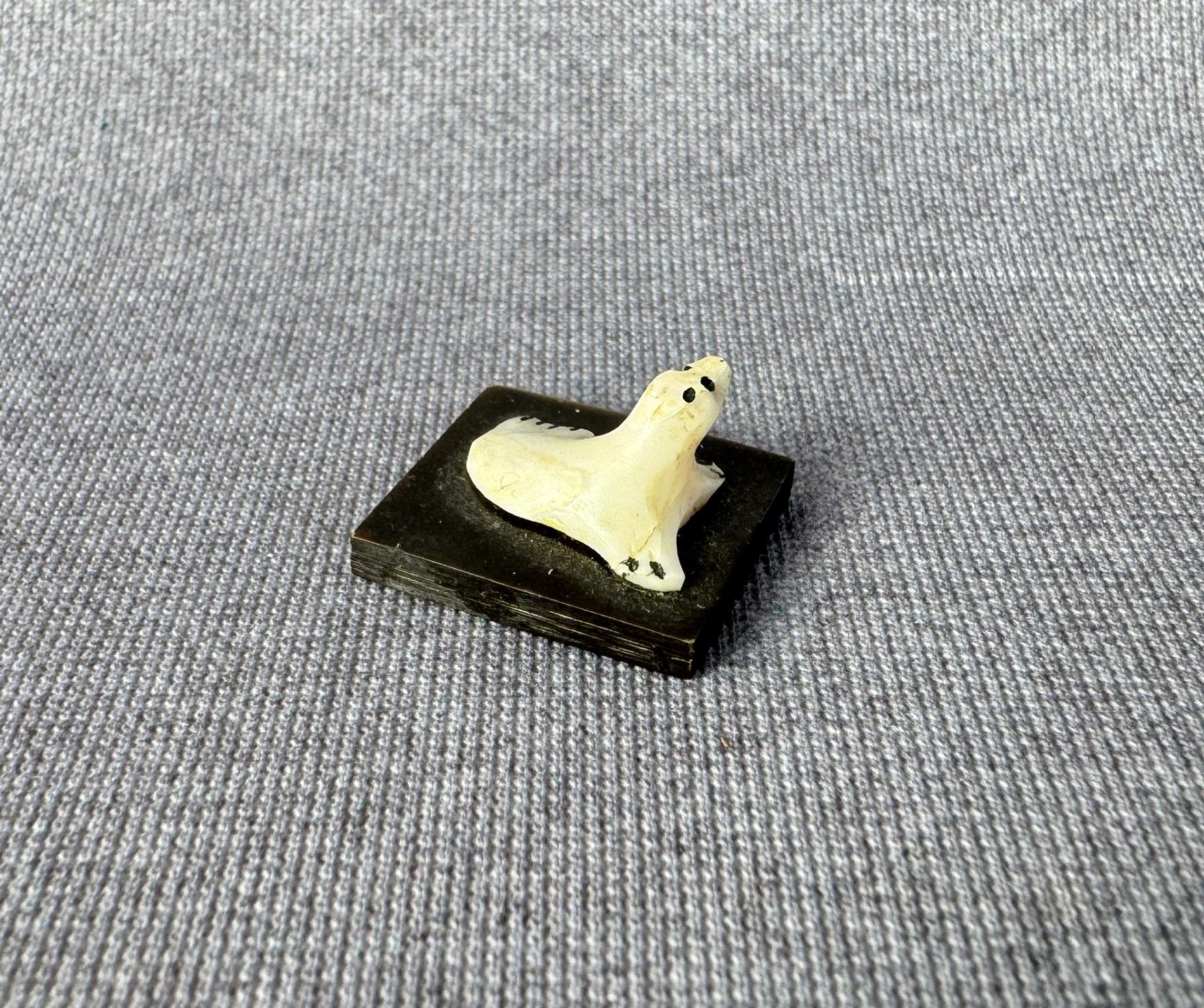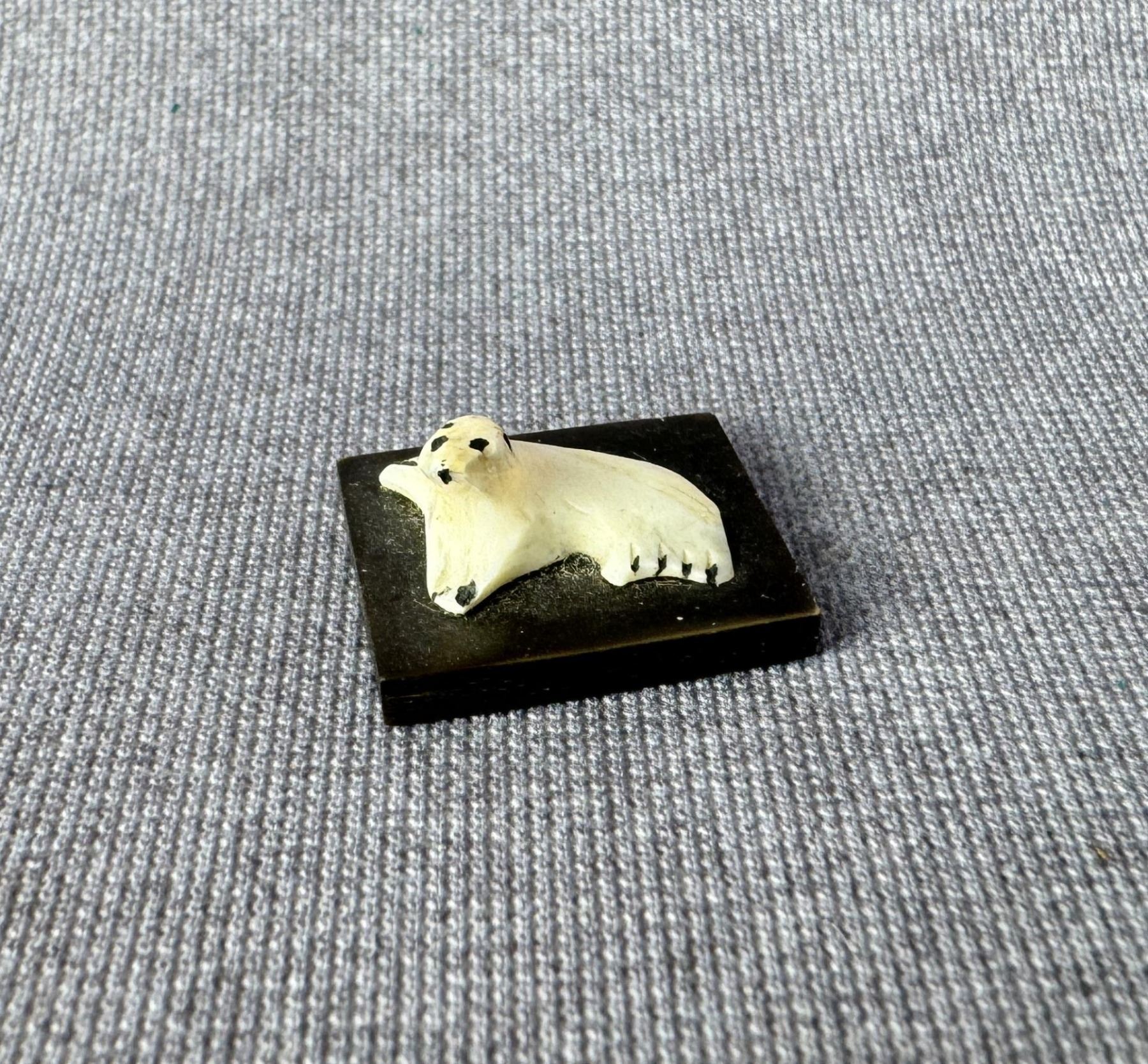 3/4" by 5/8" by 3/8". Carved walrus material. Native made prior to 1972. This item cannot be shipped to Oregon, California, Hawaii, New York, New Jersey, Internationally, or any other state that prohibits.