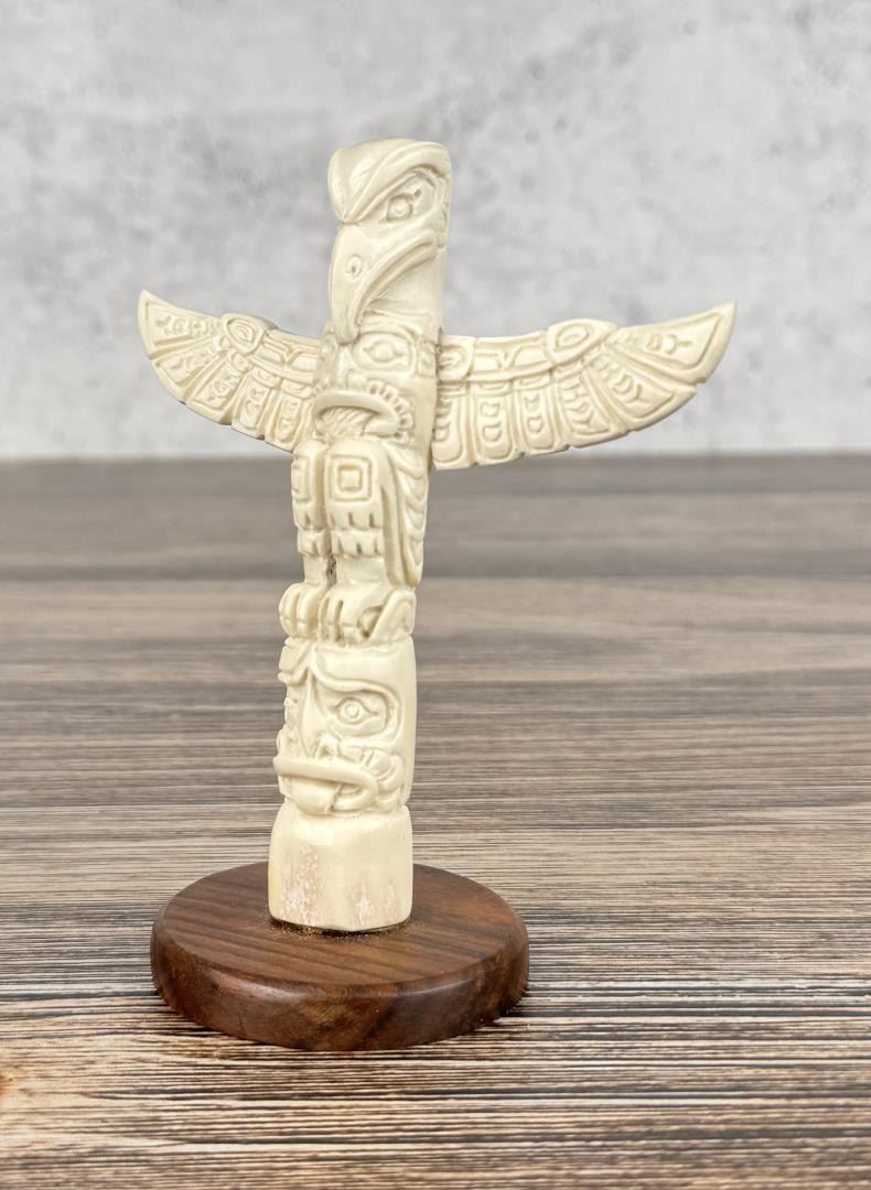 5" tall. Carved walrus material. Native made prior to 1972. This item cannot be shipped to Oregon, California, Hawaii, New York, New Jersey, Internationally, or any other state that prohibits.