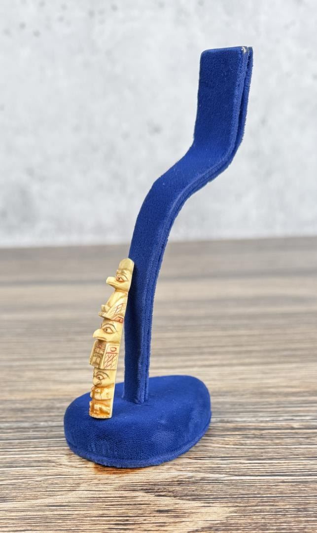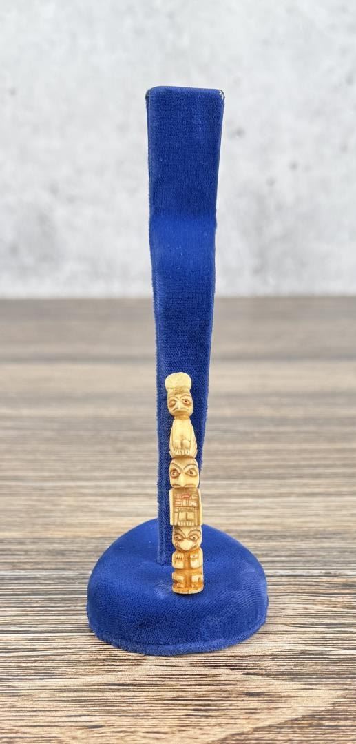 2 1/4" tall. Carved walrus material. Native made prior to 1972. This item cannot be shipped to Oregon, California, Hawaii, New York, New Jersey, Internationally, or any other state that prohibits.