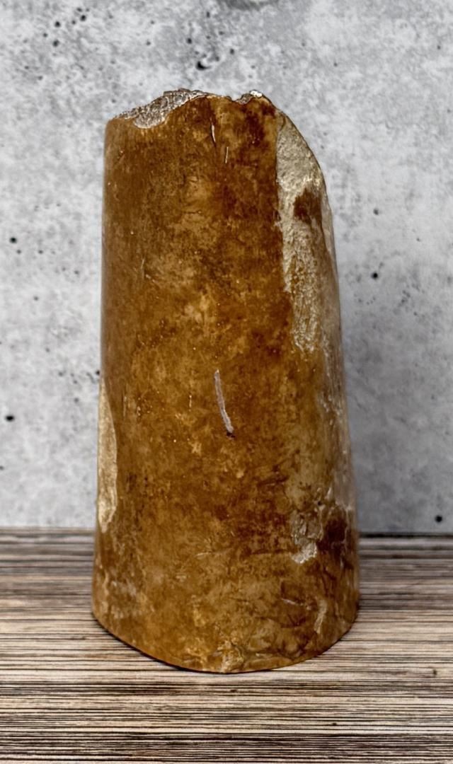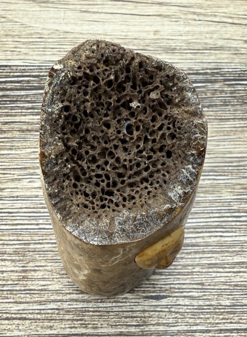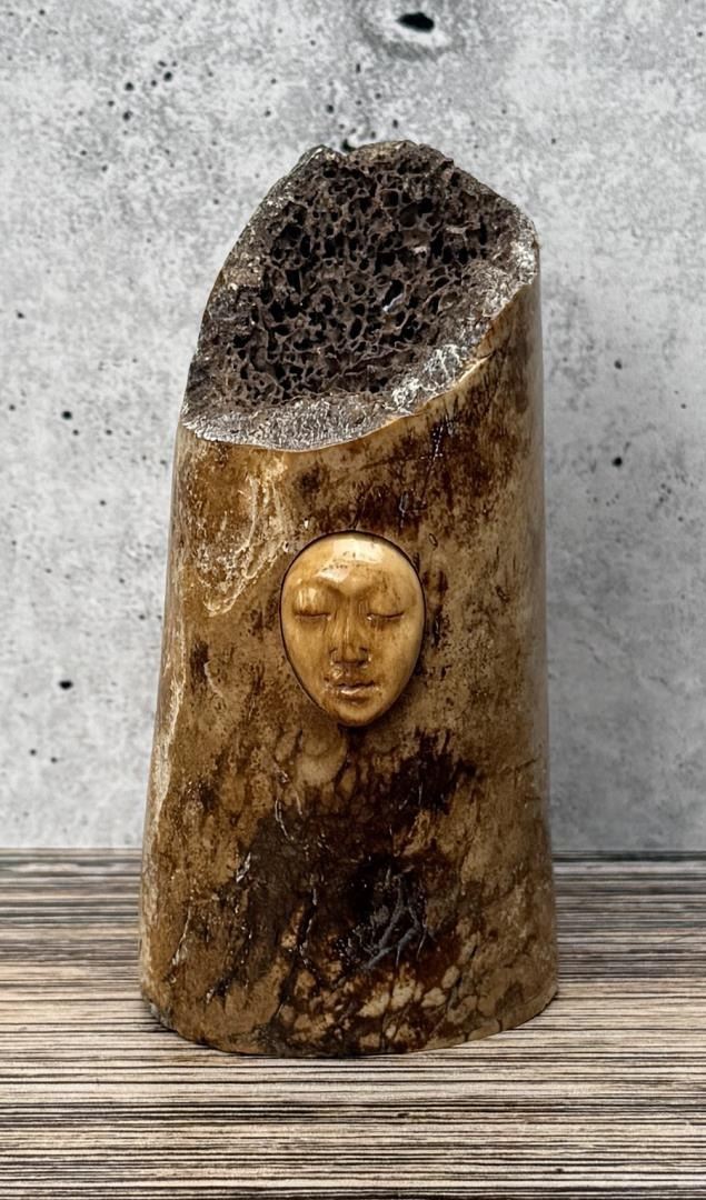 3 5/8" tall. Carved walrus material. Native made prior to 1972. This item cannot be shipped to Oregon, California, Hawaii, New York, New Jersey, Internationally, or any other state that prohibits.