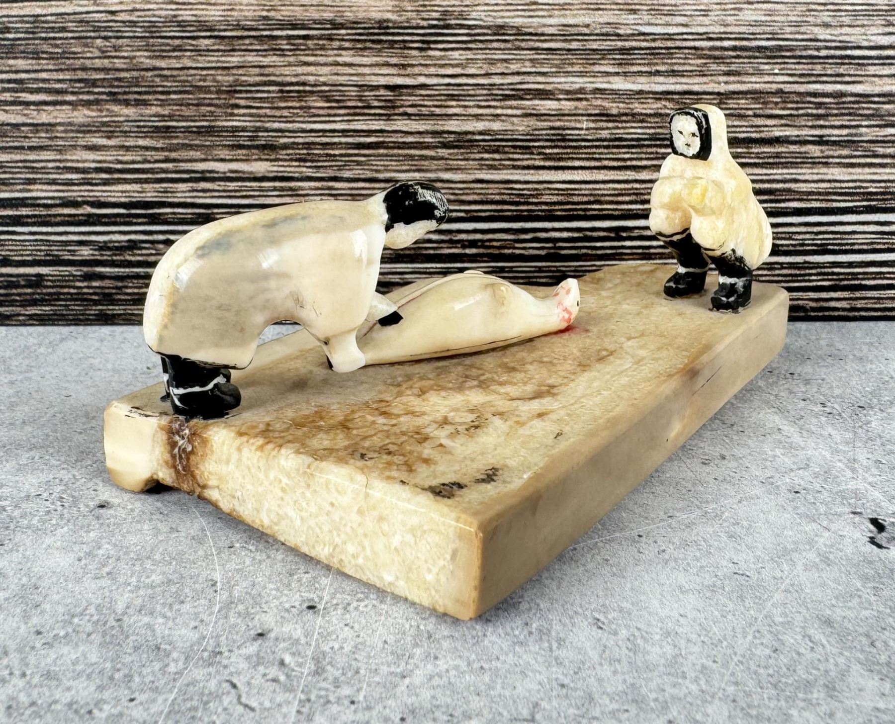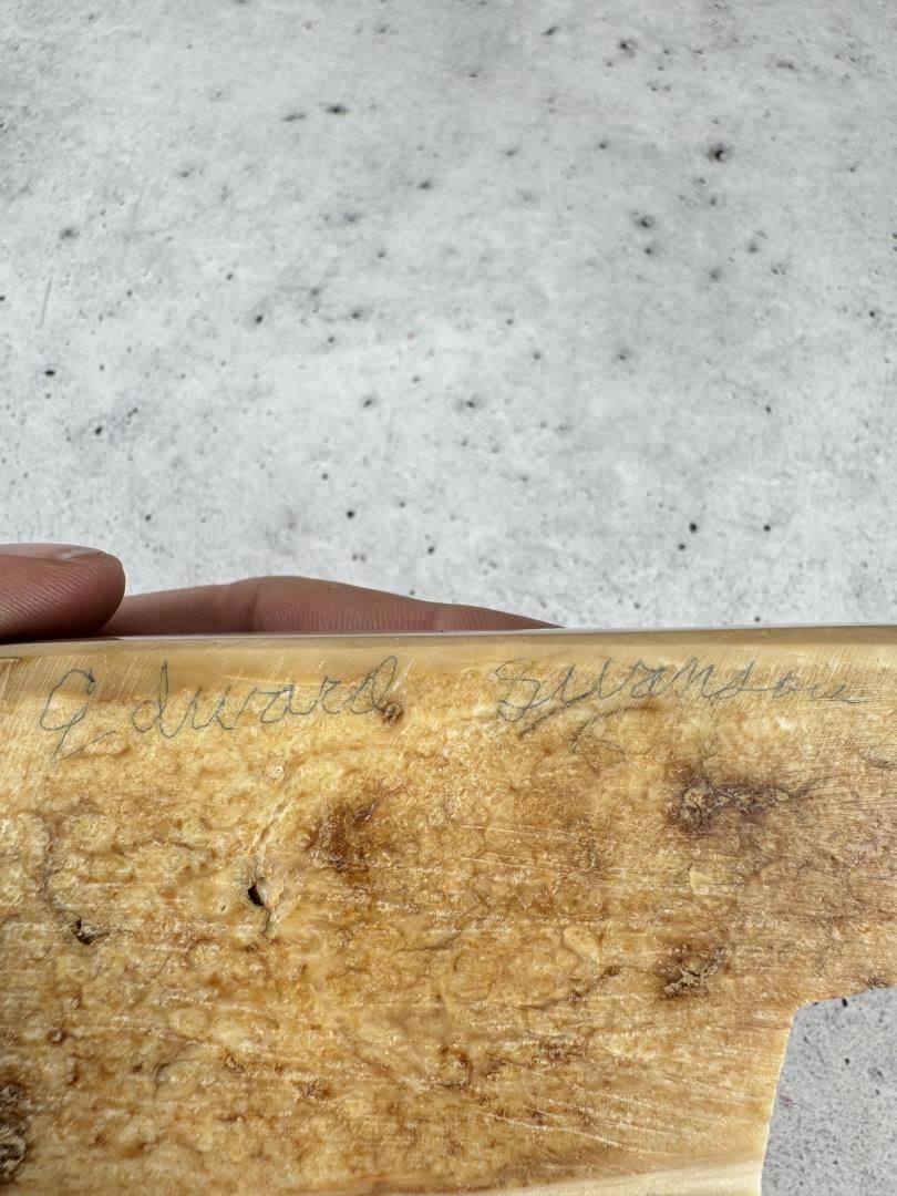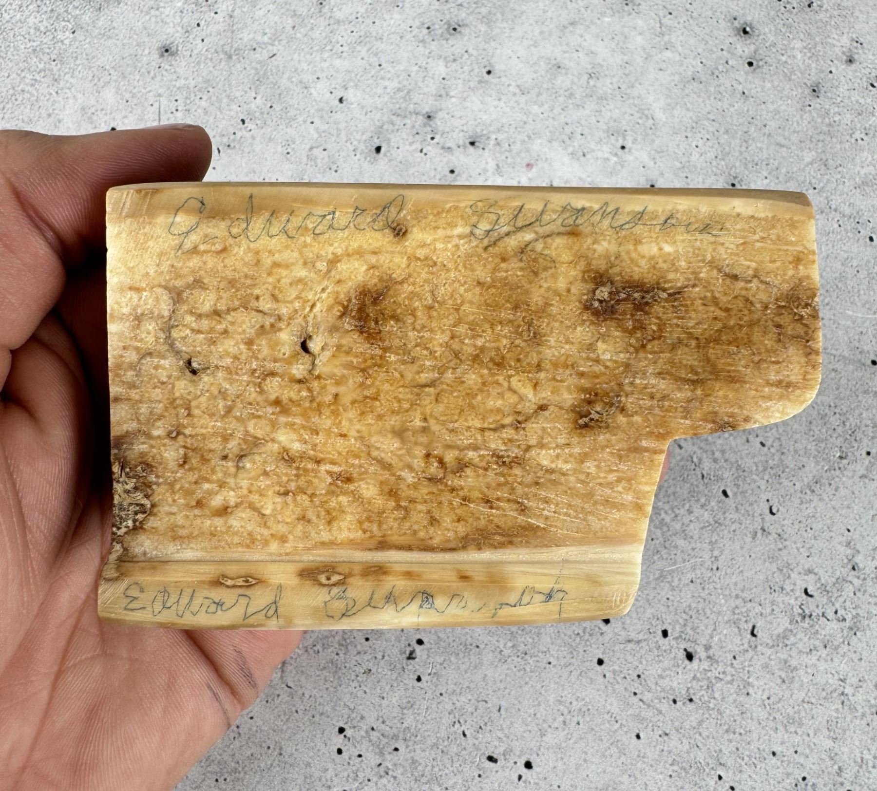 Carved Walrus Material. Signed as shown. 4" by 2 1/2" by 1 3/4".