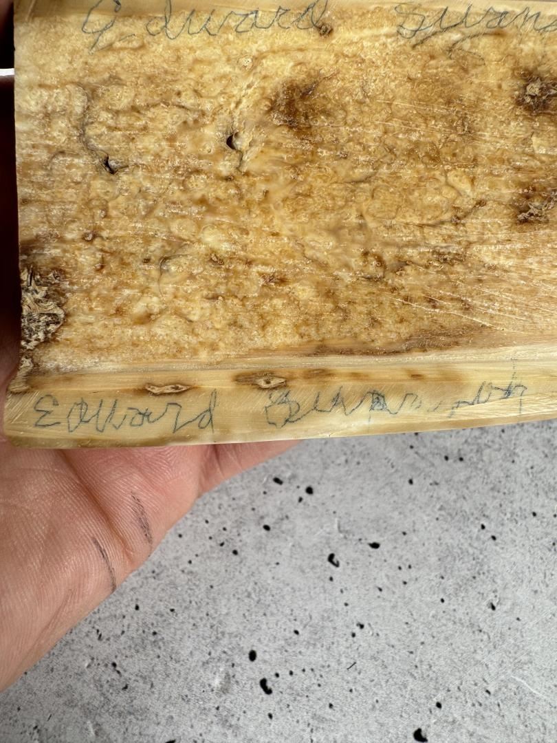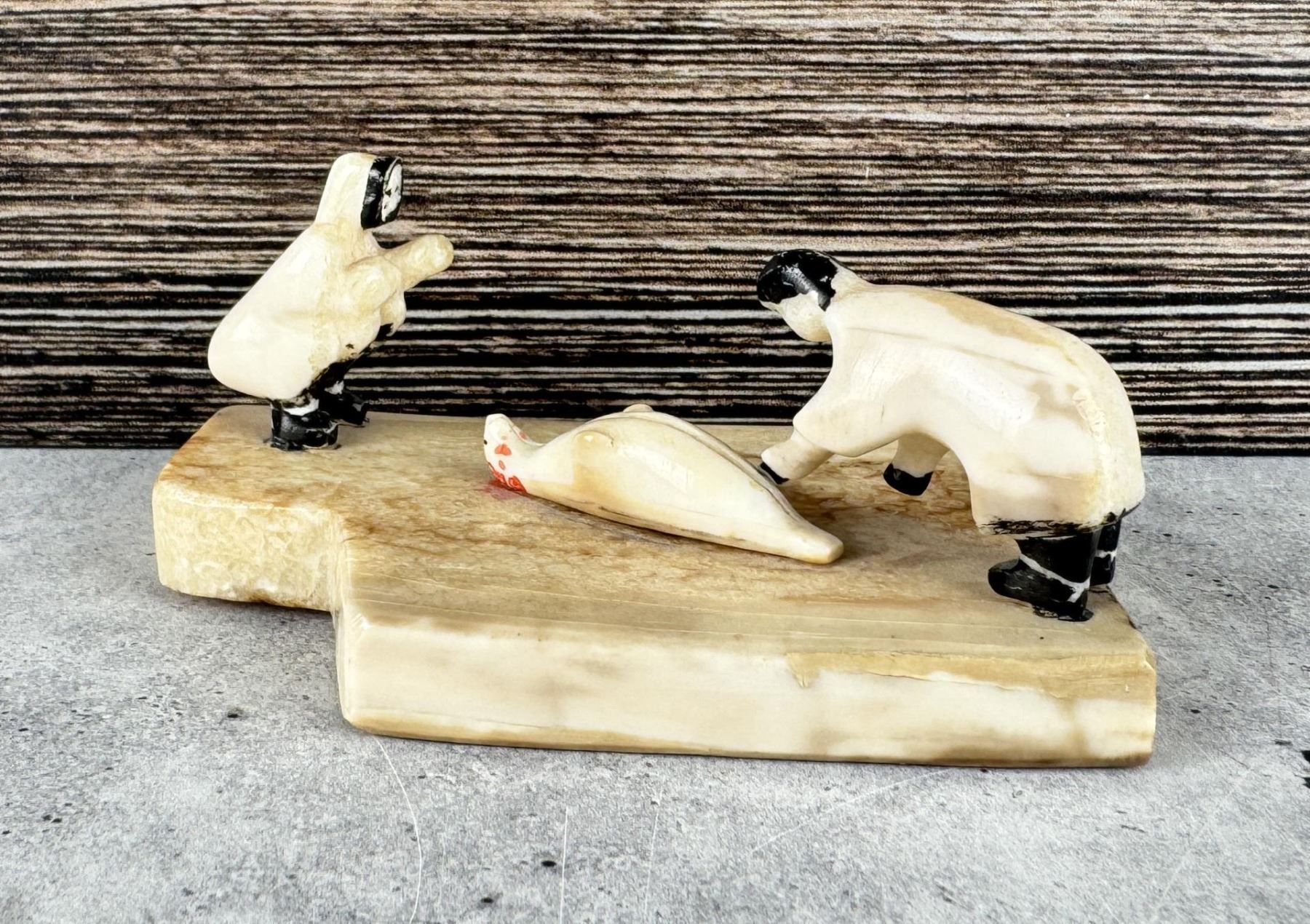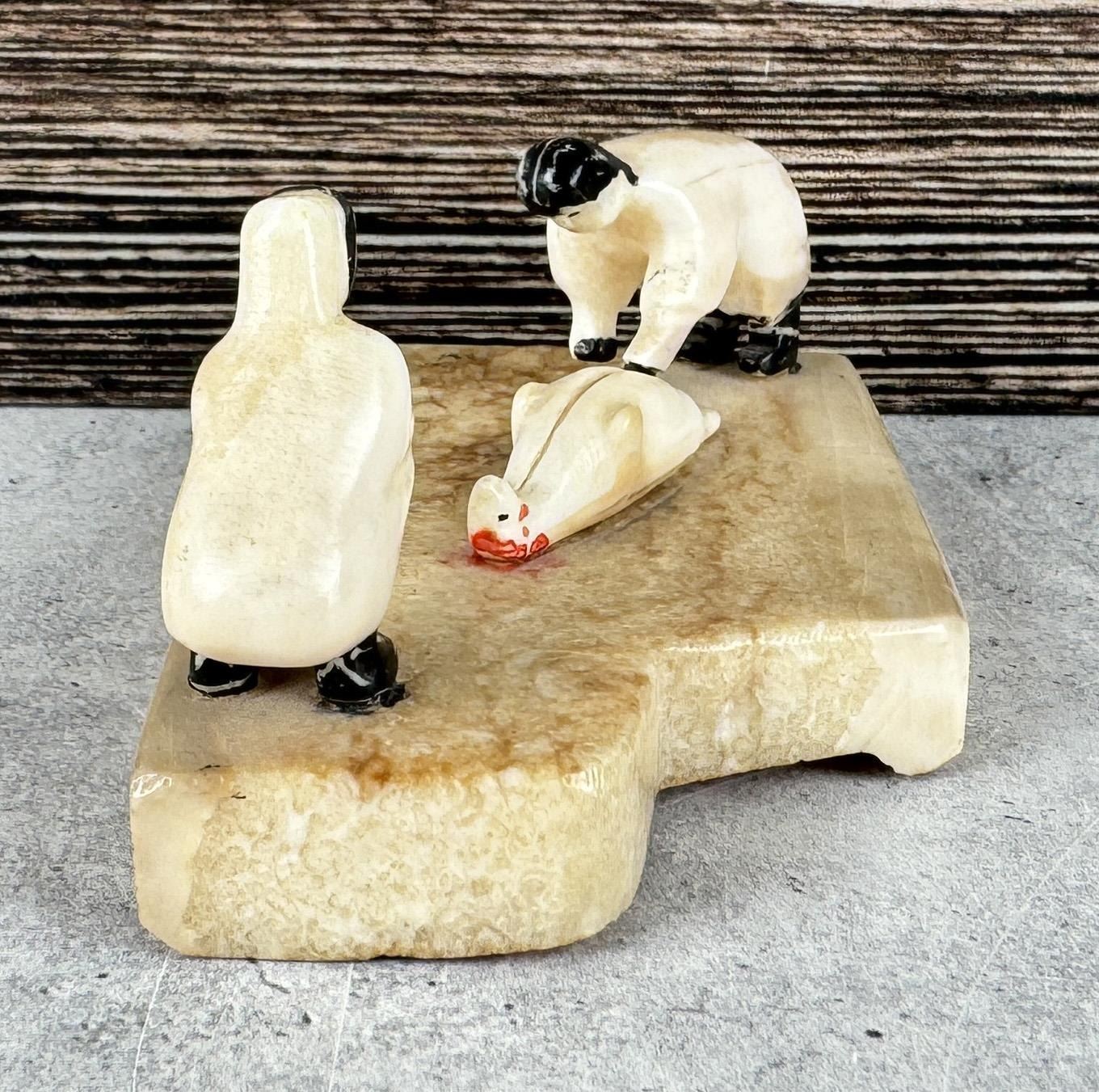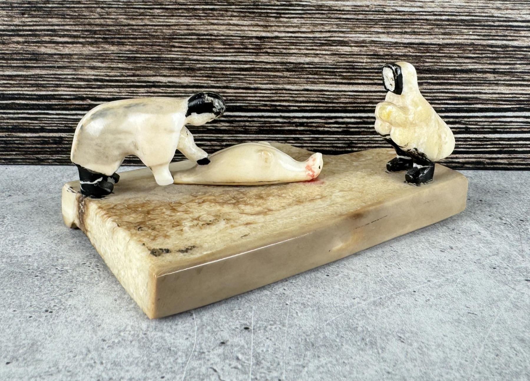 Carved Walrus Material. Signed as shown. 4" by 2 1/2" by 1 3/4".