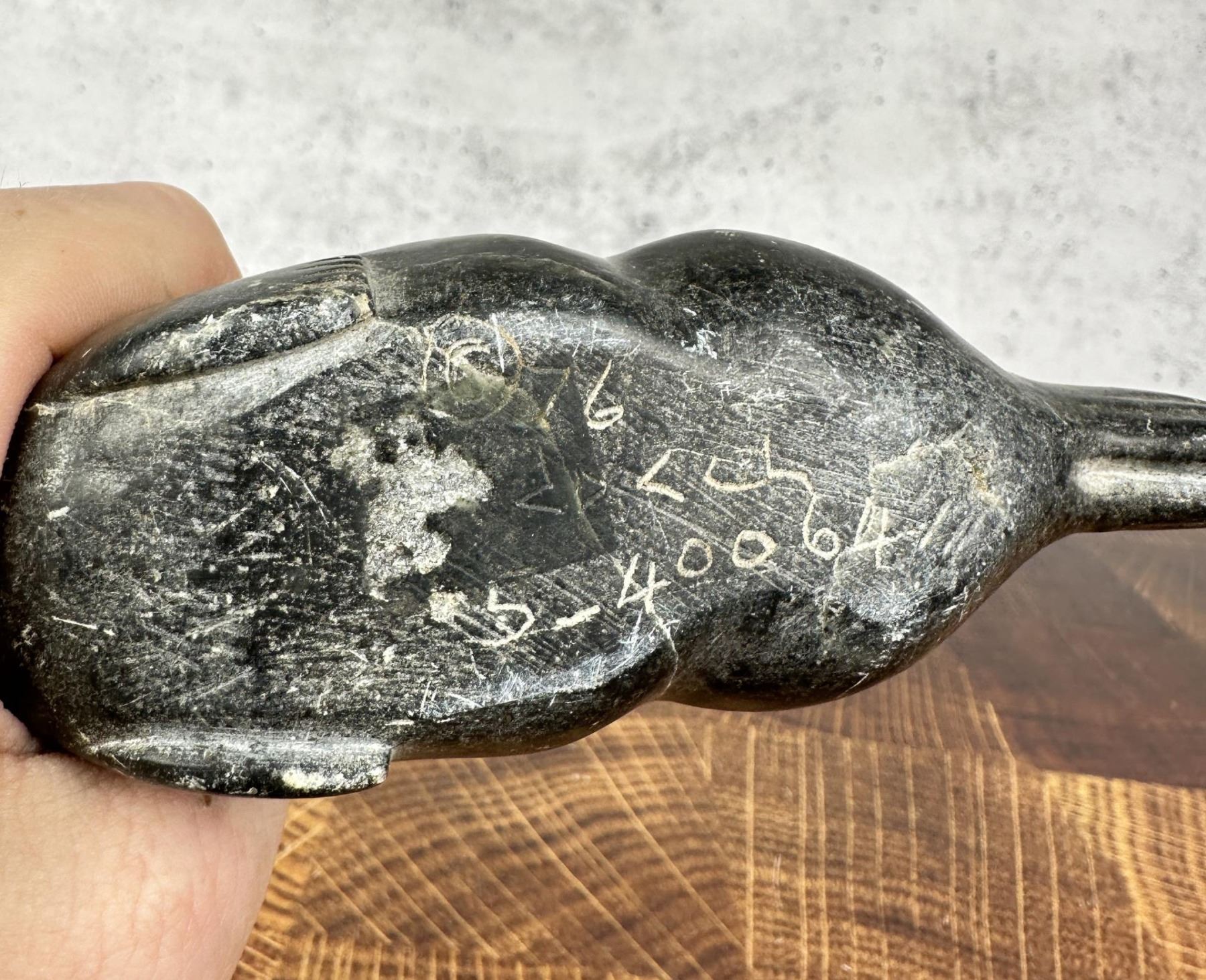 6 1/4" by 1 3/4" by 1 3/4". Signed as shown.