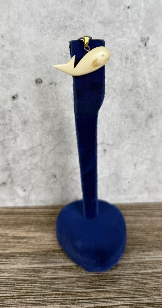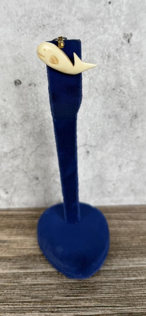 1 1/4" by 1/2" by 1/4". Carved walrus material. Native made prior to 1972. This item cannot be shipped to Oregon, California, Hawaii, New York, New Jersey, Internationally, or any other state that prohibits.