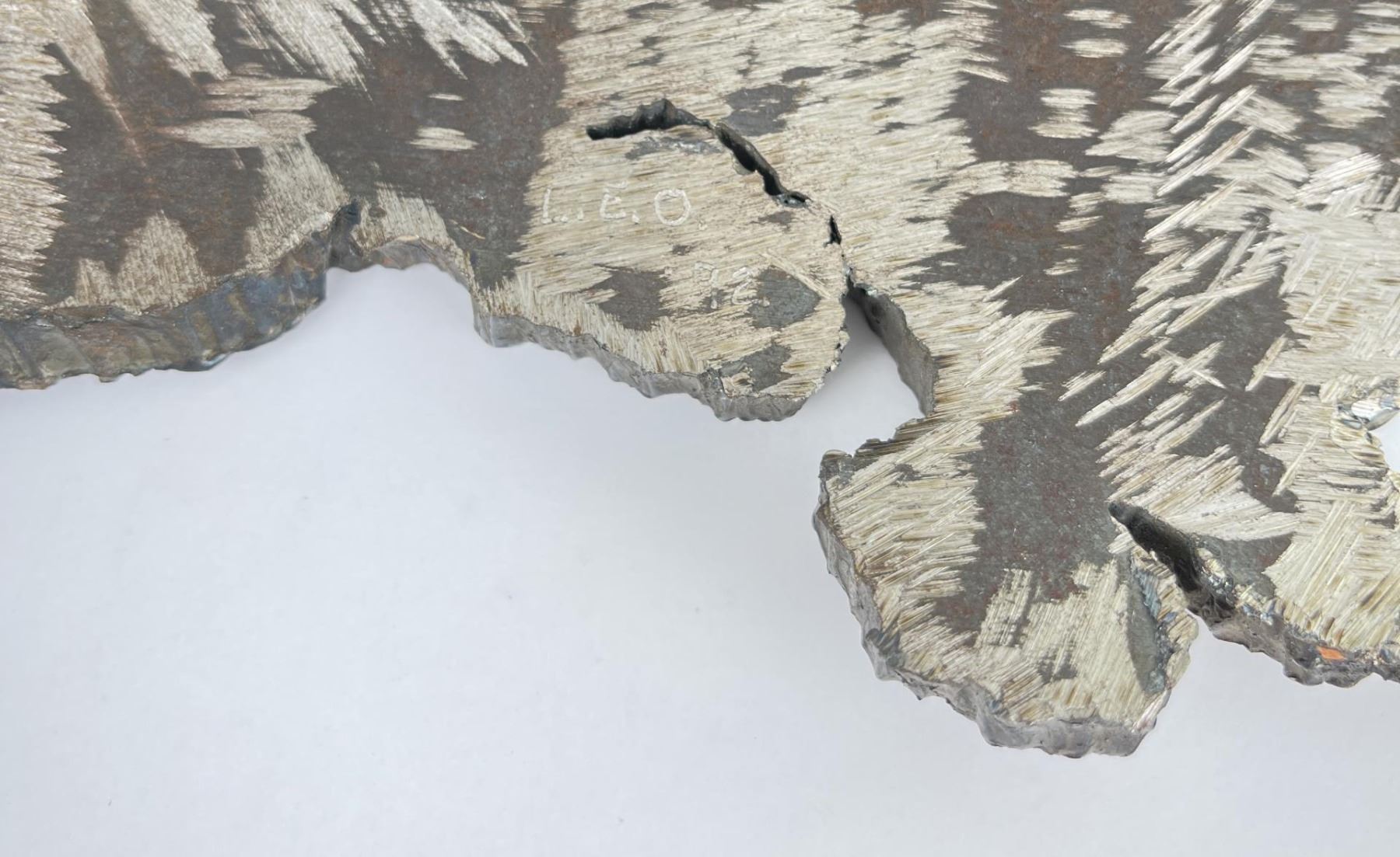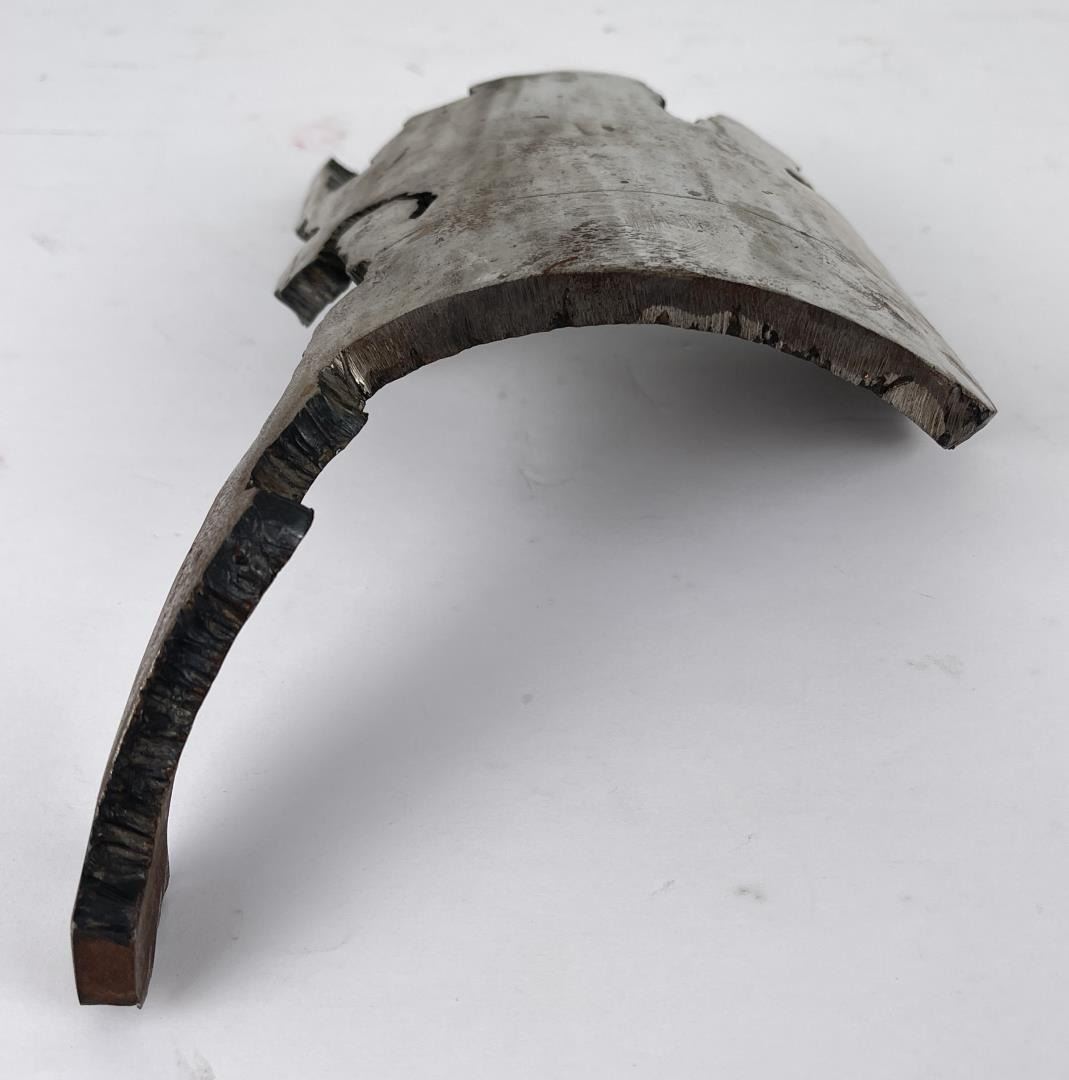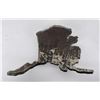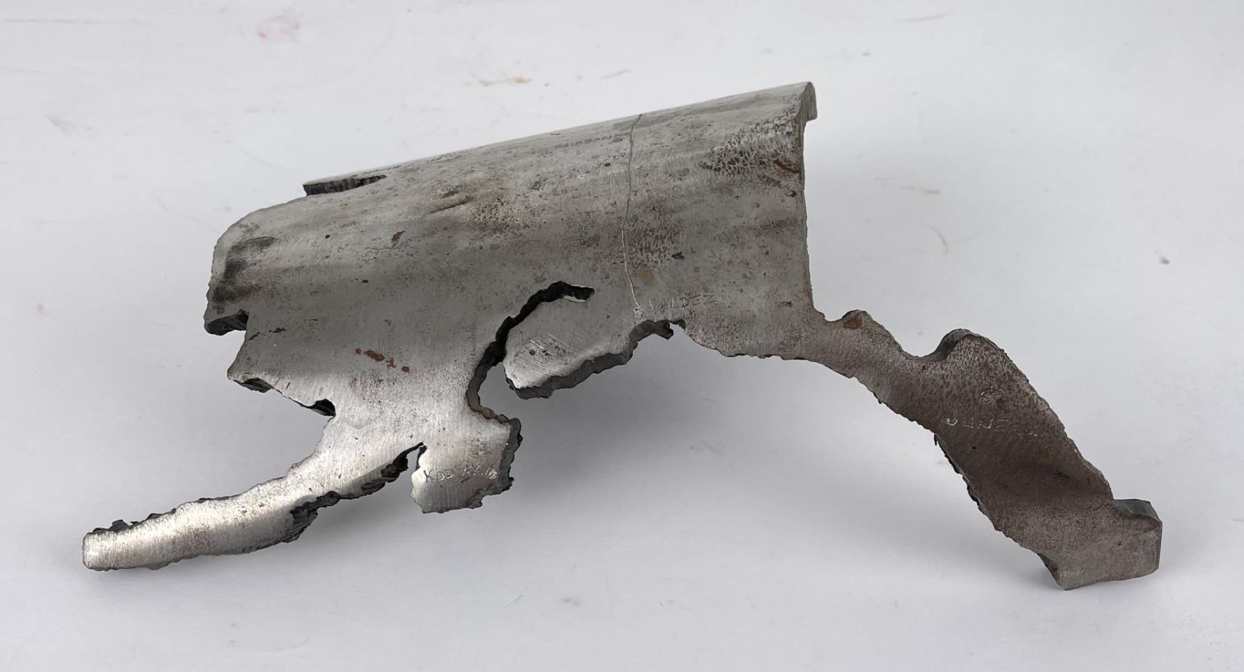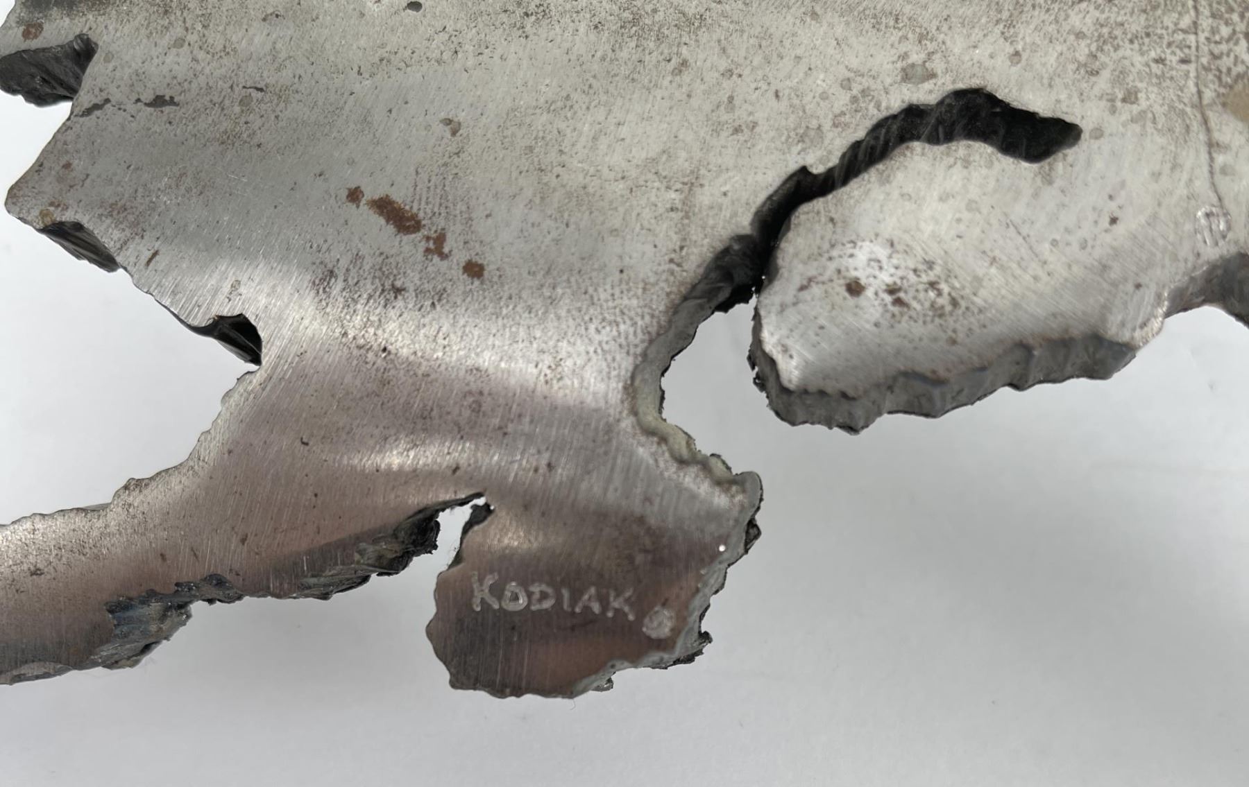 Very neat sculpture. Made from part of the Alaskan Oil Pipeline. Engraved with the route and the cities. 9 1/4" long, 5" tall.