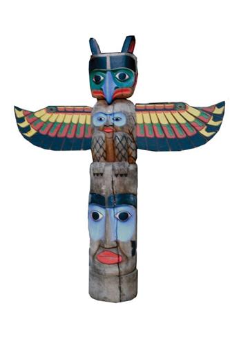 Alaskan Totem Pole With Wings. 5' 11" tall. 5' wide. 1950s. Finely painted and carved. (est $3,000-4,000)