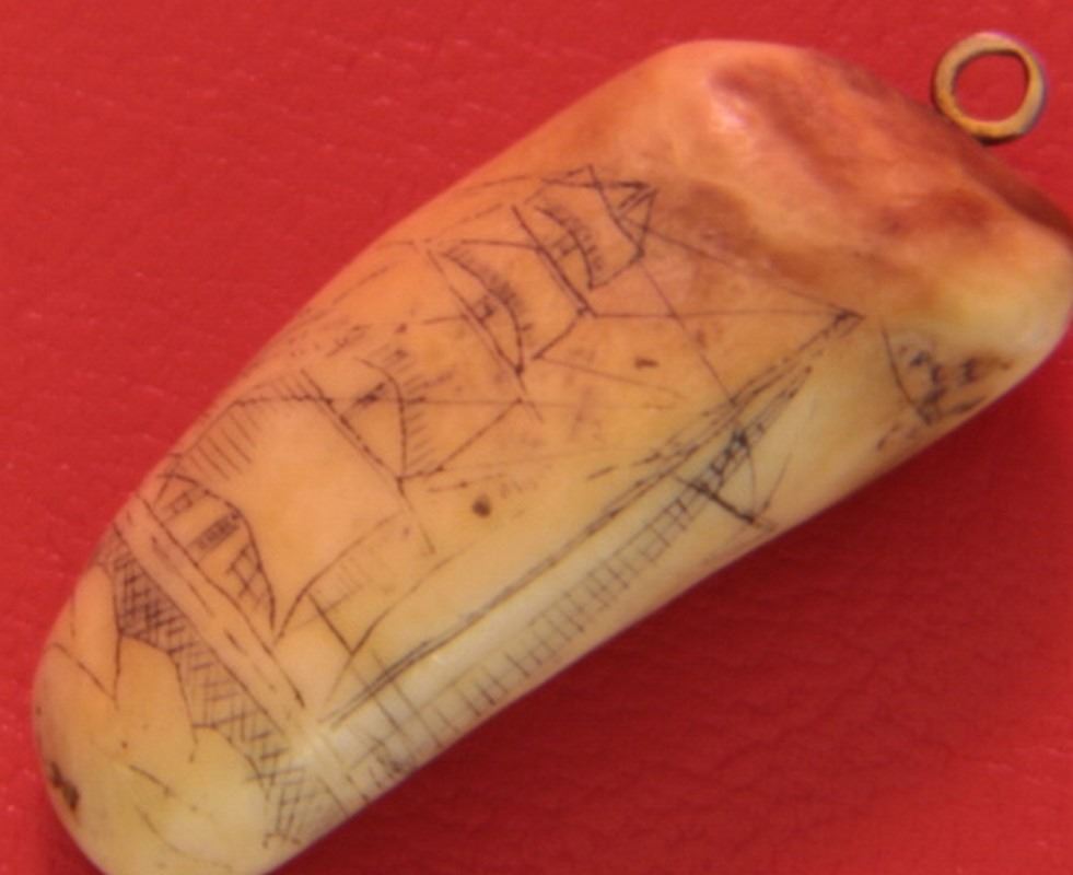 4-pieces of Alaskan Walrus Tusk & Bone w. Art Etching Mythological Ocean Creature Signed MLM 1978