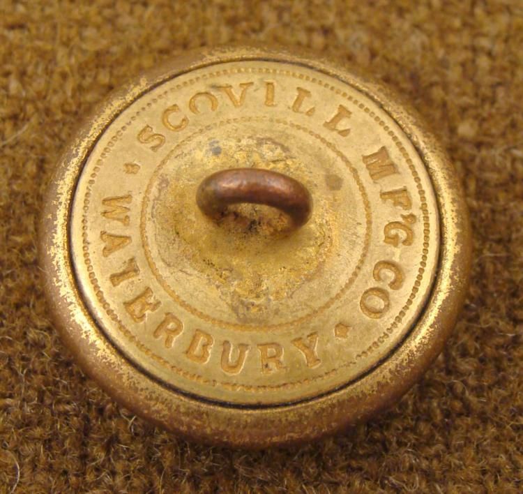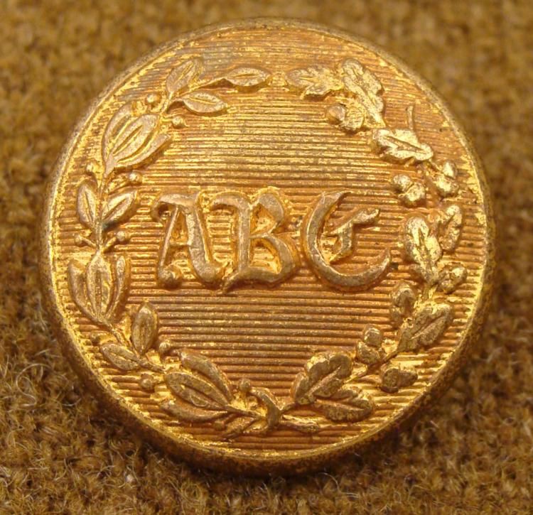 This is a military coat button from the Albany Burgesses Corps, dating from around the Civil War period. The ABC was an independent organization of volunteers during the war and post war. The button is gilt, with original coat backing. The back is marked from the maker: "SCOVILLE MF'G. CO." It is approximately 7/8 inch in diameter. It is in very good condition..