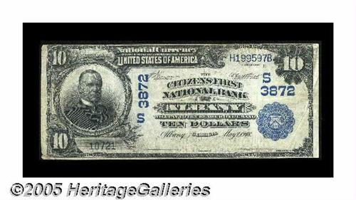 <B>Albany, GA</B></I> - $10 1902 Date Back Fr. 618 <B>The Citizens First NB</B></I> Ch. # (S)3872<BR>The second of two titles used by this very scarce bank, with only one note known with the first title and just four (including this specimen) reported with the second. <B>Fine,</B></I> the signatures faded.