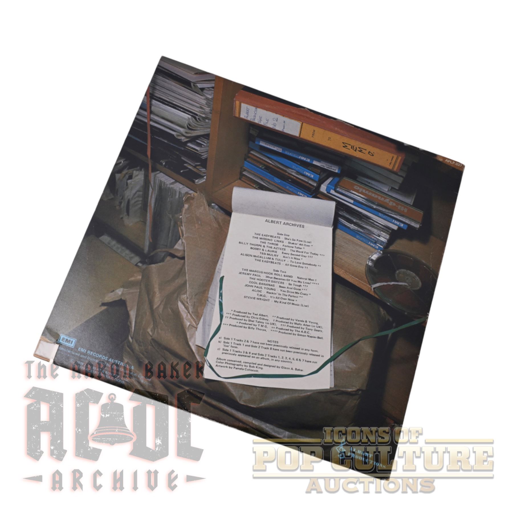 Released in 1979 by Albert Productions (catalog number APLP-037) in Australia, Albert Archives is a rare compilation album celebrating the legendary label’s roster of Australian rock artists from 1965 to 1976. The LP features a curated selection of tracks from iconic acts associated with producers Harry Vanda and George Young, including AC/DC, The Easybeats, Stevie Wright, Billy Thorpe & The Aztecs, and The Missing Links. Notably, the album includes the early AC/DC track “Can I Sit Next to You, Girl,” recorded with original lead singer Dave Evans before Bon Scott joined the band. The release serves as both a historical showcase and a tribute to the pioneering role Albert Productions played in shaping the Australian rock sound. Housed in a gatefold sleeve with artist bios and liner notes, Albert Archives remains a sought-after collector’s item documenting the origins of one of rock’s most influential musical families.