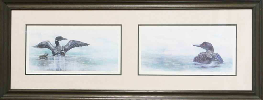 Albert Casson's "Early Morning - Summer Rain" limited edition framed print signed and numbered 144/950. Each Image- 10 1/4" x 20". Frame- 22" x 55 1/2".