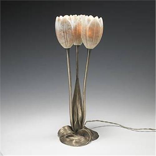 Albert Cheuret Tulip table lamp France, c. 1925 silvered bronze, alabaster 5.5 dia x 15 h inches Impressed signature to base: [Albert Cheuret]. Literature: Lumieres: Je Pense a Vous, Lang, pg. 149