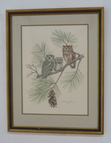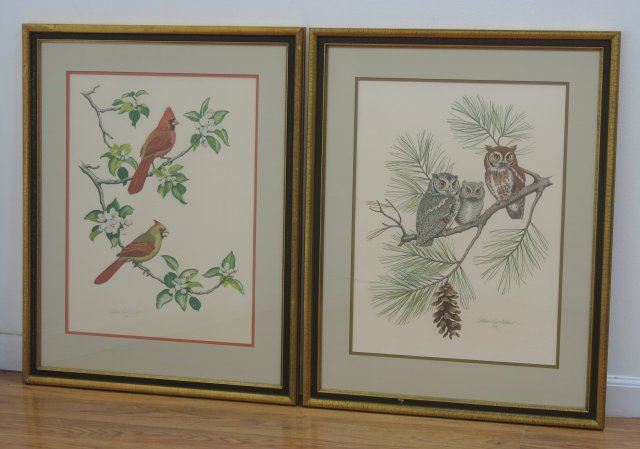 Prints. "The Screech Owl," pencil signed and dated 1978. "The Cardinal," pencil signed and dated 1977. Albert Earl Gilbert (Born 1939). Both approx. 22" H x 16" W sight, 31" H x 25" W framed.