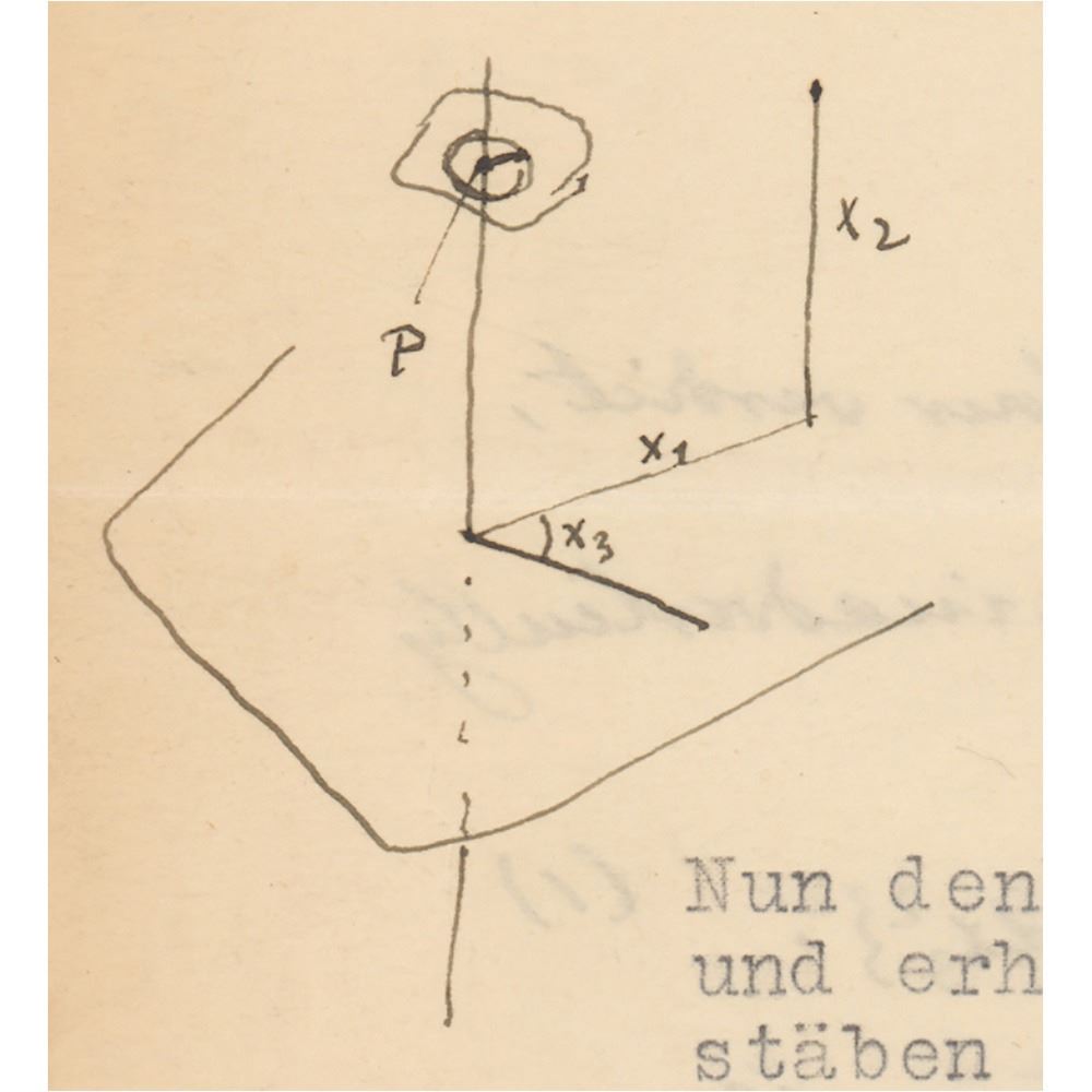 In part (translated): "I was at first very perplexed about your static example with the two masses, as I believed you that the space external to the mass points was regular. I was so much the more amazed as I had myself earlier showed that singularities already appear when calculating the second approximation. In truth, however, the solution you give on the - axis is singular, as the following consideration shows." Einstein walks through several mathematical steps, sketching a diagram in the margin. He continues: "However, for an infinitely small circle this ratio must everywhere equal 2π at the limit, something that is precisely in this instance not the case for the x2 axis. The calculated field is therefore everywhere singular on the x2 axis. From this there follows first of all the invalidity of your example. More interesting would be the proof of the nonexistence of a static solution (whose singularities have simple polar character). I have shown this earlier at least for the second approximation (and that for a 'correctly' accelerated mass the singularity disappears). It therefore does seem hardly possible to doubt that the field equations contain the law of motion, hence that the hypothesis of the geodesic line is superfluous. Nevertheless, a truly complete theory would be at hand only if the 'matter' in it could be represented in terms of fields and without singularities."